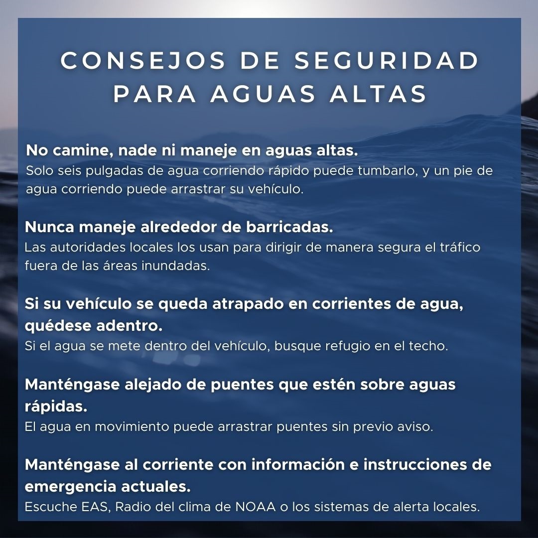 - No intente conducir/manejar por áreas inundadas.