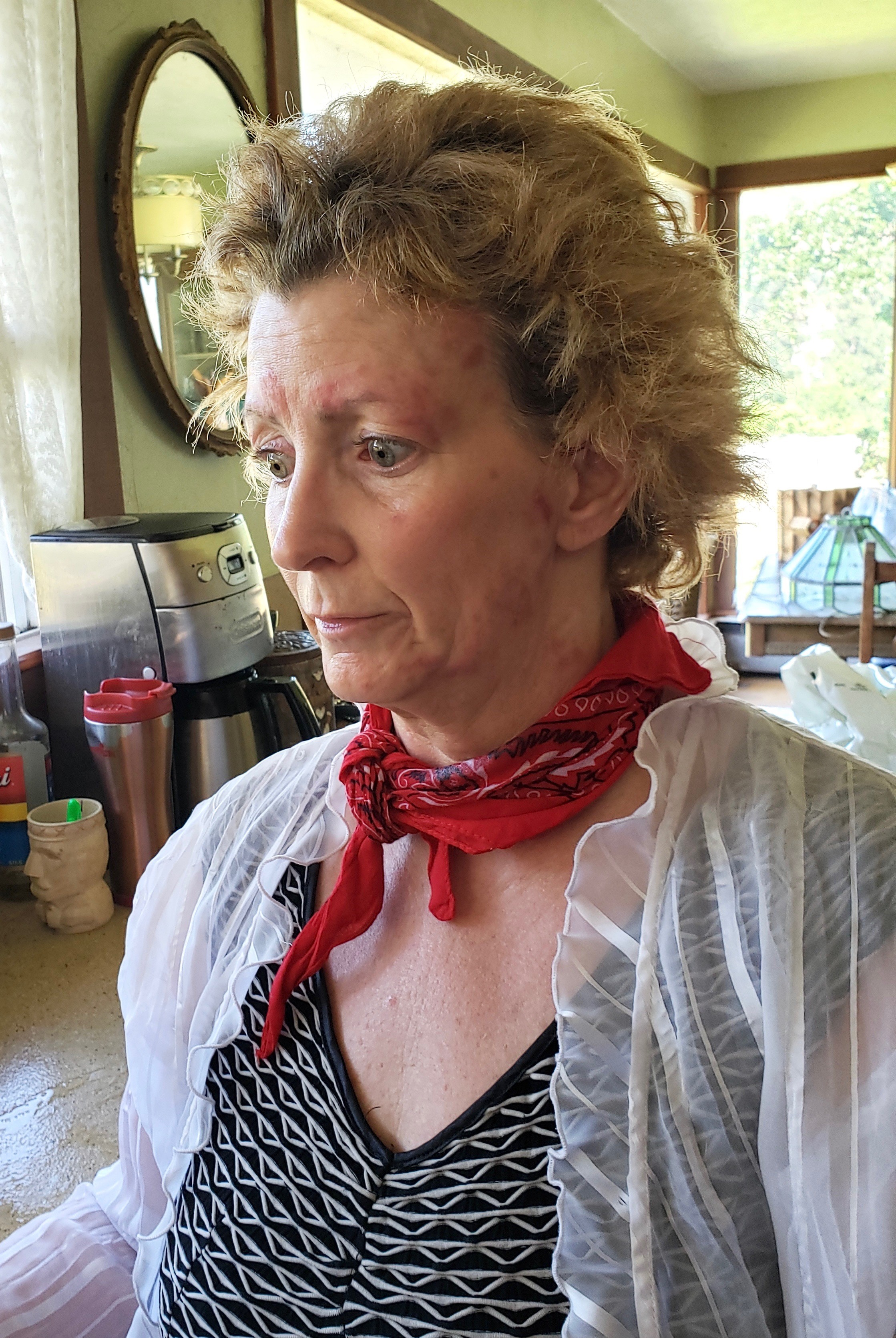 She is described to be 5"00" tall, 115 lbs with hazel eyes and curly shoulder length blonde hair. At the time she left, Sharman was wearing a maroon long-sleeve shirt with translucent sleeves, a black vest, cuffed blue jeans, and black and white sneakers. She left her cell phone, wallet, and all credit/debit cards inside her residence.