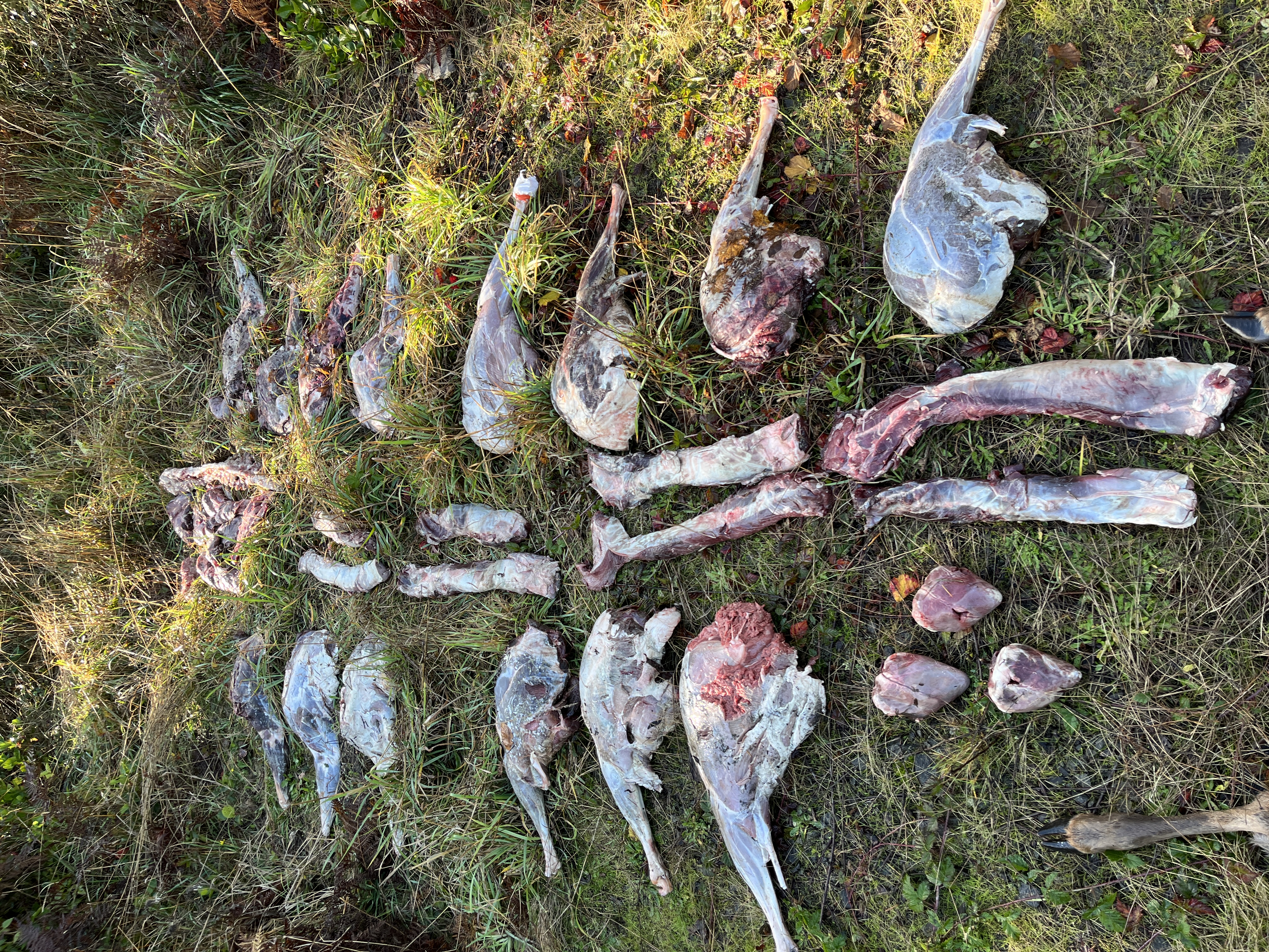 On Tuesday, November 4th, 2025, a reporting party located a large amount of deer meat and front and rear deer quarters thrown into the bushes off South Elwood Road, just east of South Benzinger Road in Colton. An Oregon State Police (OSP) Fish and Wildlife trooper arrived on scene and located the decaying remains of four deer that had been butchered elsewhere and taken to the area where the parts were thrown into dense vegetation on Port Blakely Tree Farm property. Three of the deer were discovered to have been killed with archery equipment. The deer parts were likely dumped in the area between Friday, October 31st, 2025, and Sunday, November 2nd, 2025.