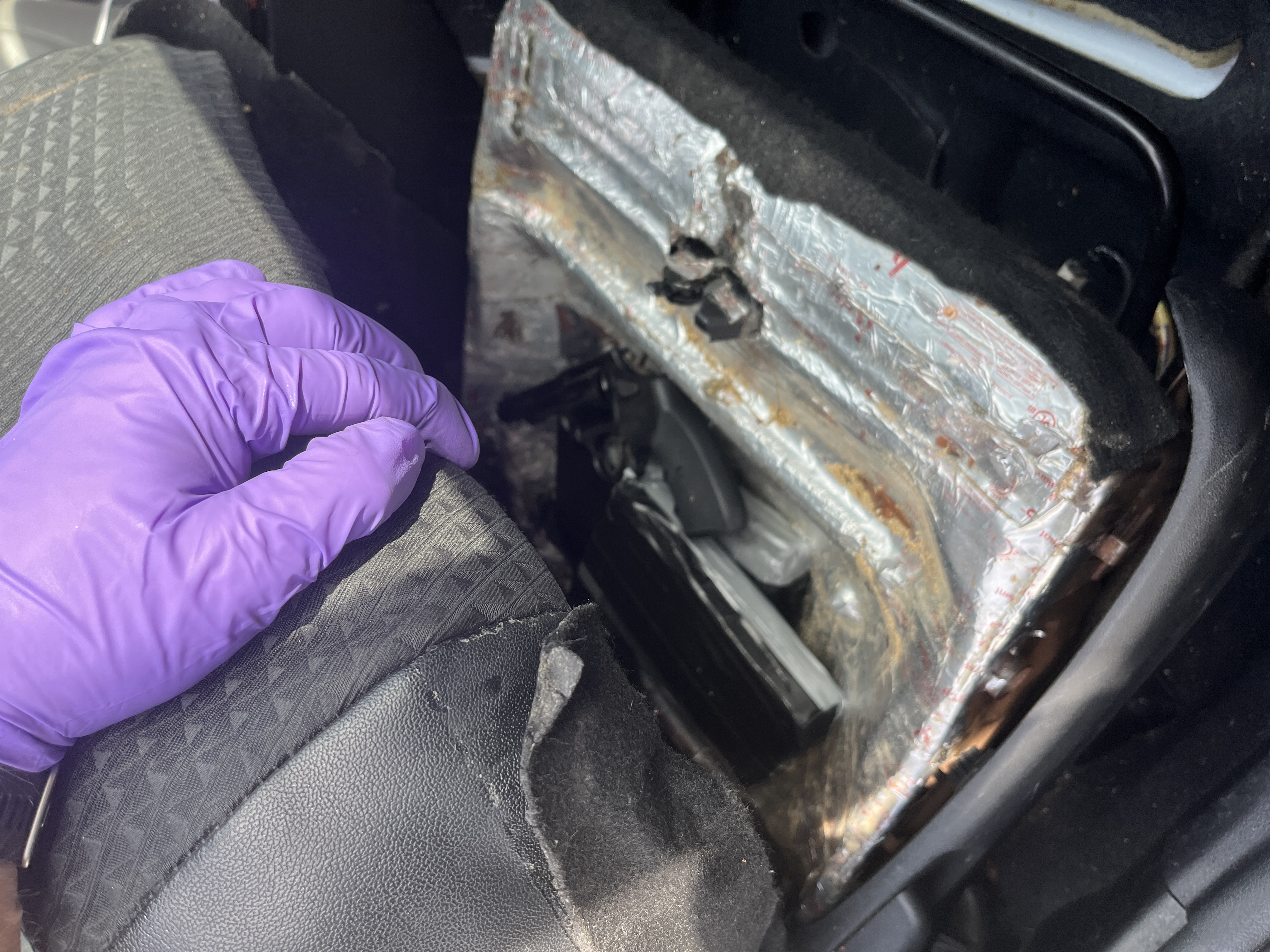 On Thursday, October 30, 2025, at approximately 12:30 p.m., an OSP K-9 trooper stopped a passenger vehicle for a traffic violation on I-5 near milepost 216 in Linn County. During the stop, the trooper noticed signs of potential criminal activity and deployed drug detection K-9 Millie around the outside of the vehicle. K-9 Millie alerted to the possible presence of controlled substances. The trooper received consent to search the vehicle and discovered a hidden compartment. The search resulted in the seizure of two kilograms of fentanyl powder, a handgun, and a large amount of U.S. currency.