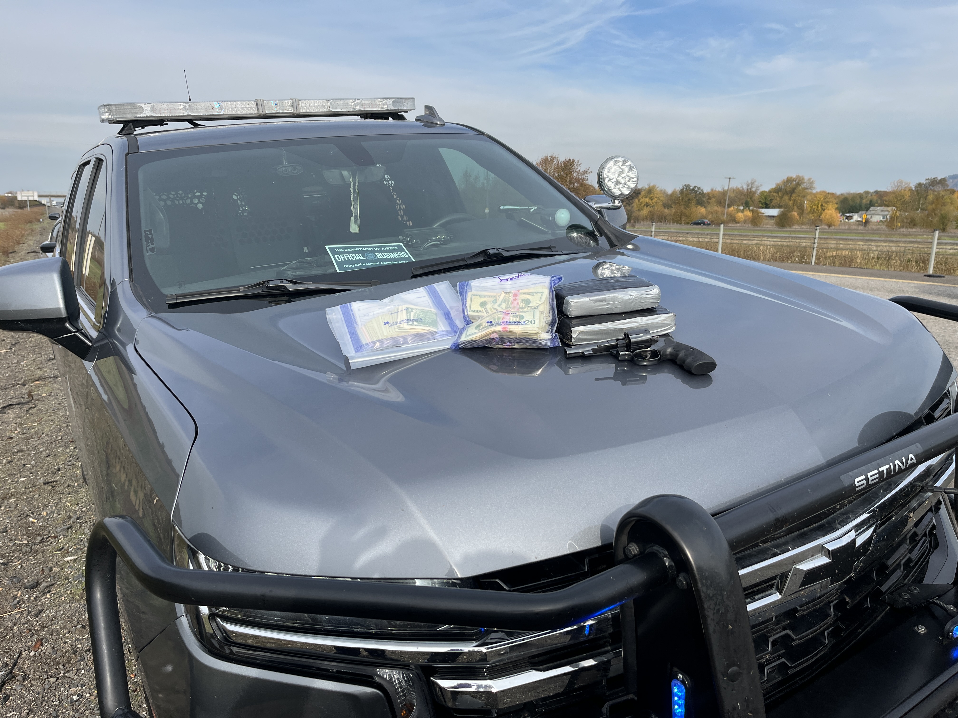 LINN COUNTY, Ore. 6 Nov. 2025 – Oregon State Police K-9 team traffic stop leads to seizure of fentanyl, a firearm, and cash.