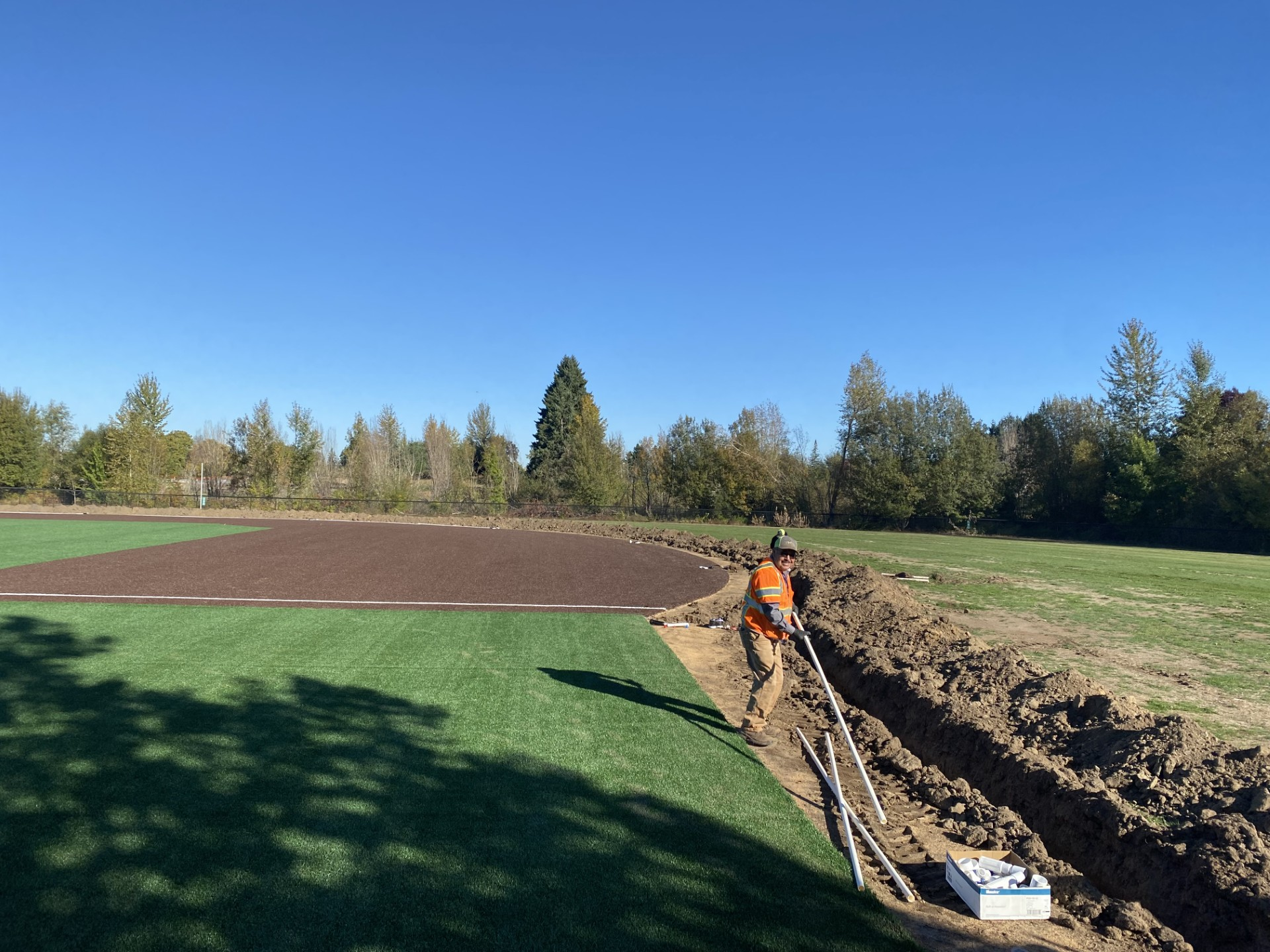 The artificial turf on the baseball fields has been installed. New natural grass is planned for the outfields. Salem staff also made irrigation system retrofits on the two ball fields. They replaced and modified the inner band of irrigation lines and heads that run between the new artificial turf and the natural grass outfields.