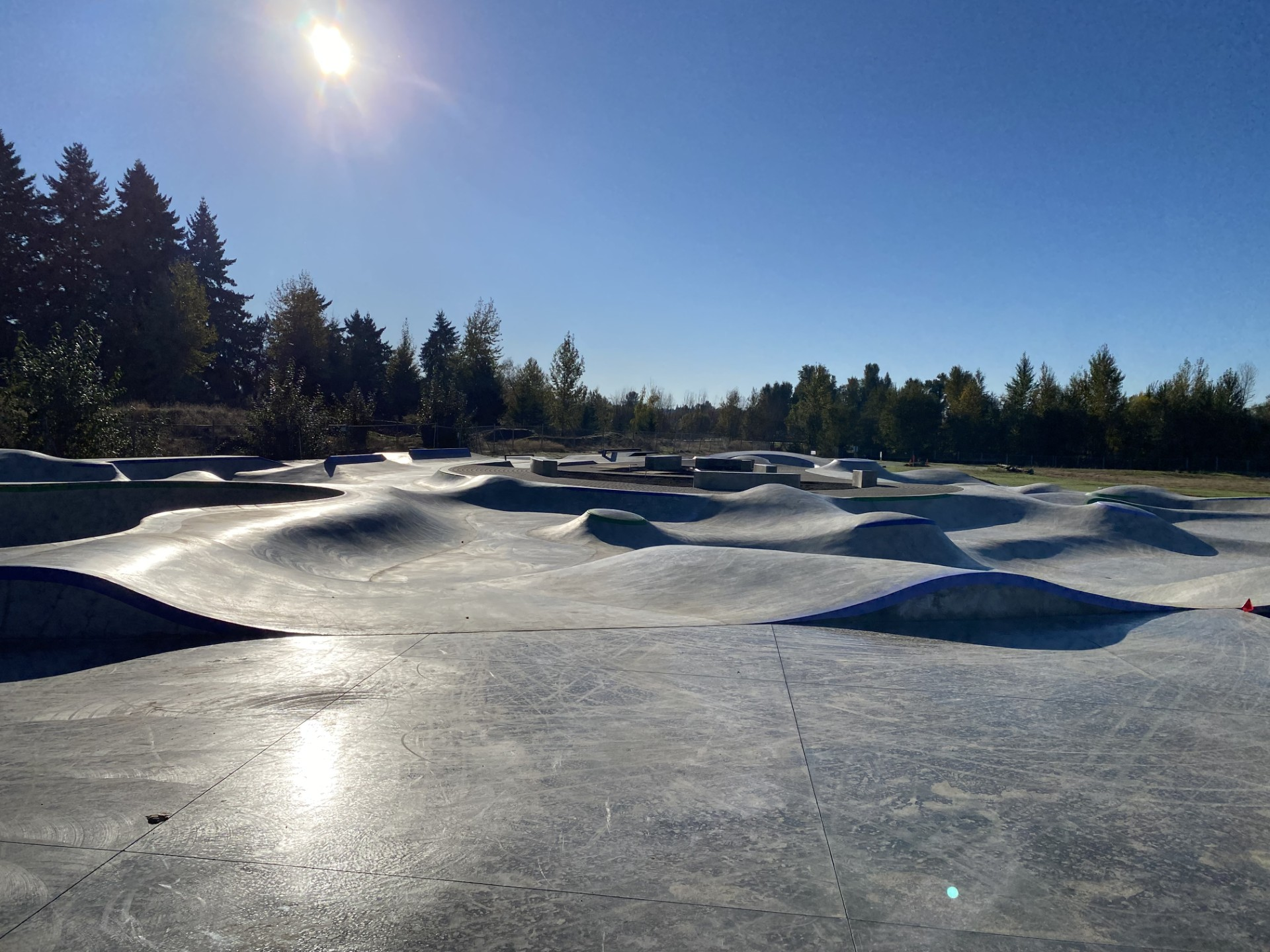 The skatepark is nearly complete. A soft opening is planned for some time between mid-November and Thanksgiving, depending on weather. Evergreen Skateparks, which designed and built the skatepark, will return with a small crew on November 17 to install additional skate features in the plaza space adjacent to the skatepark. They will be working until the day before Thanksgiving.
