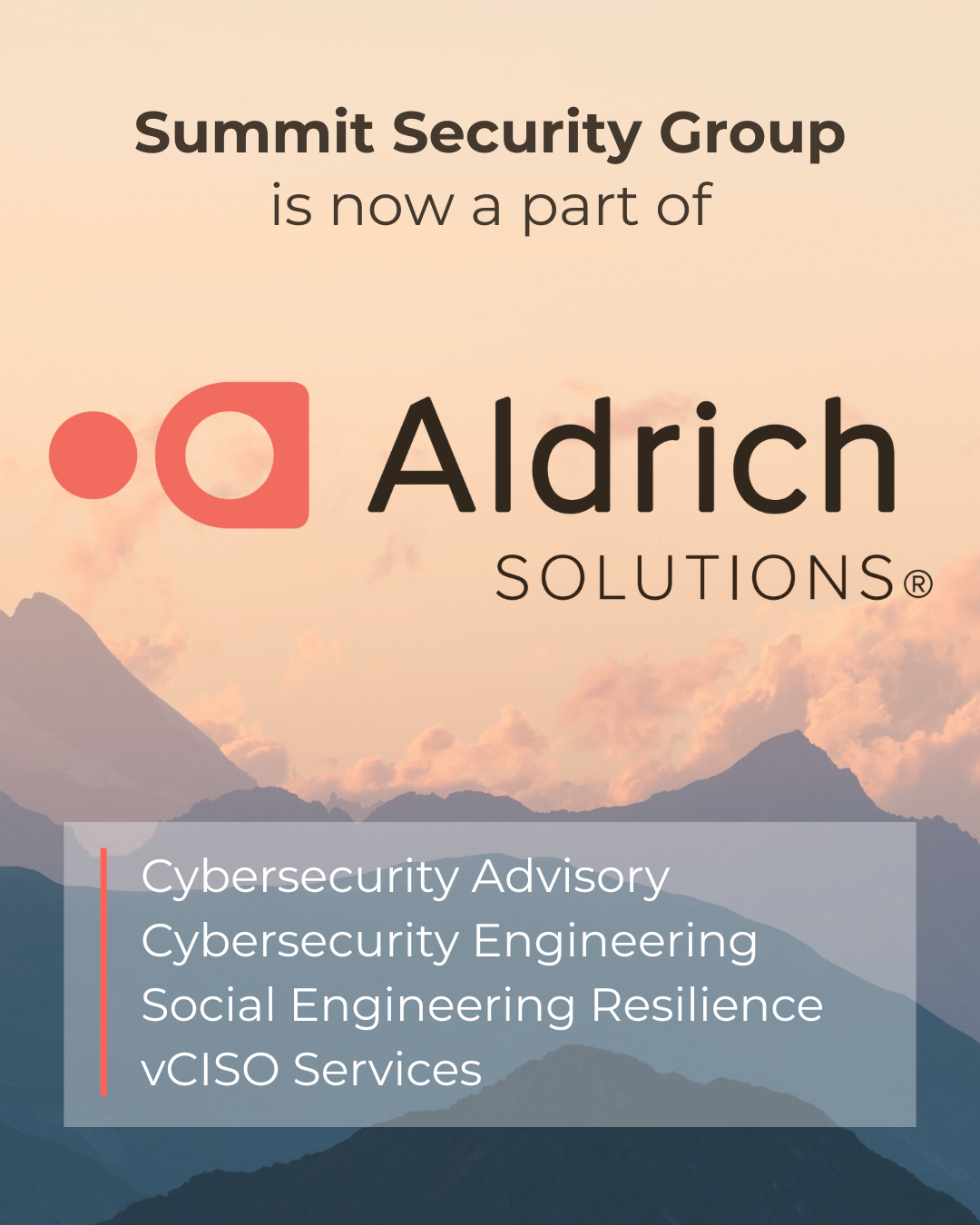 “The alignment in values, entrepreneurial mindset, and dedication to providing high-value services to clients made joining Aldrich an easy decision,” said Daniel Briley, Founder and CEO, Summit Security Group. “Becoming part of Aldrich Solutions will allow us to expand our capabilities and deliver even greater value to our clients through a more integrated and strategic approach to cybersecurity and business advisory services.”