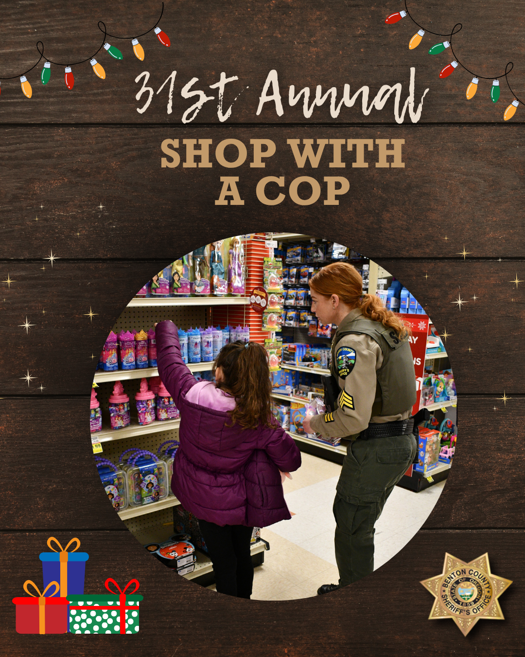 CORVALLIS, Ore. – The Benton County Sheriff’s Office (BCSO) is proud to host the 31st Annual Shop with a Cop event this holiday season. This long-standing tradition strengthens positive connections between youth and local law enforcement, offering children a fun and memorable shopping experience alongside officers and social workers.