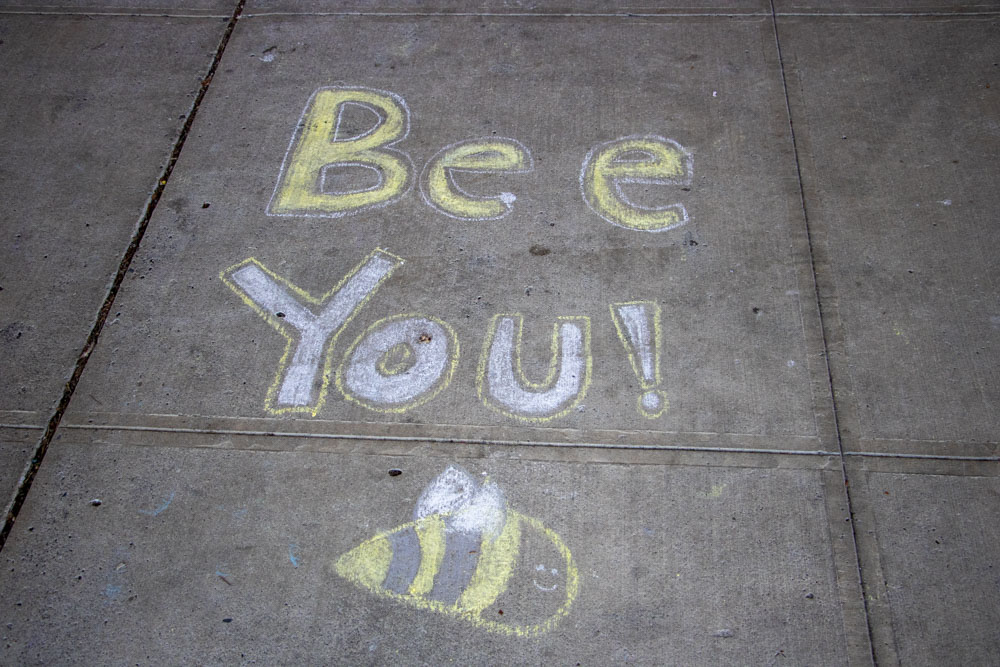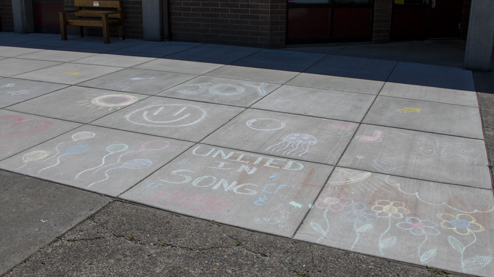 Some students greeted staff at the door, others plastered encouraging sticky notes to bathroom mirrors or hearts on doors (what they’ve dubbed a “heart attack”), and some headed outside with sidewalk chalk to write messages of positivity. Others created cards and gifts to give to counselors, secretaries, security workers and people doing attestation before school.