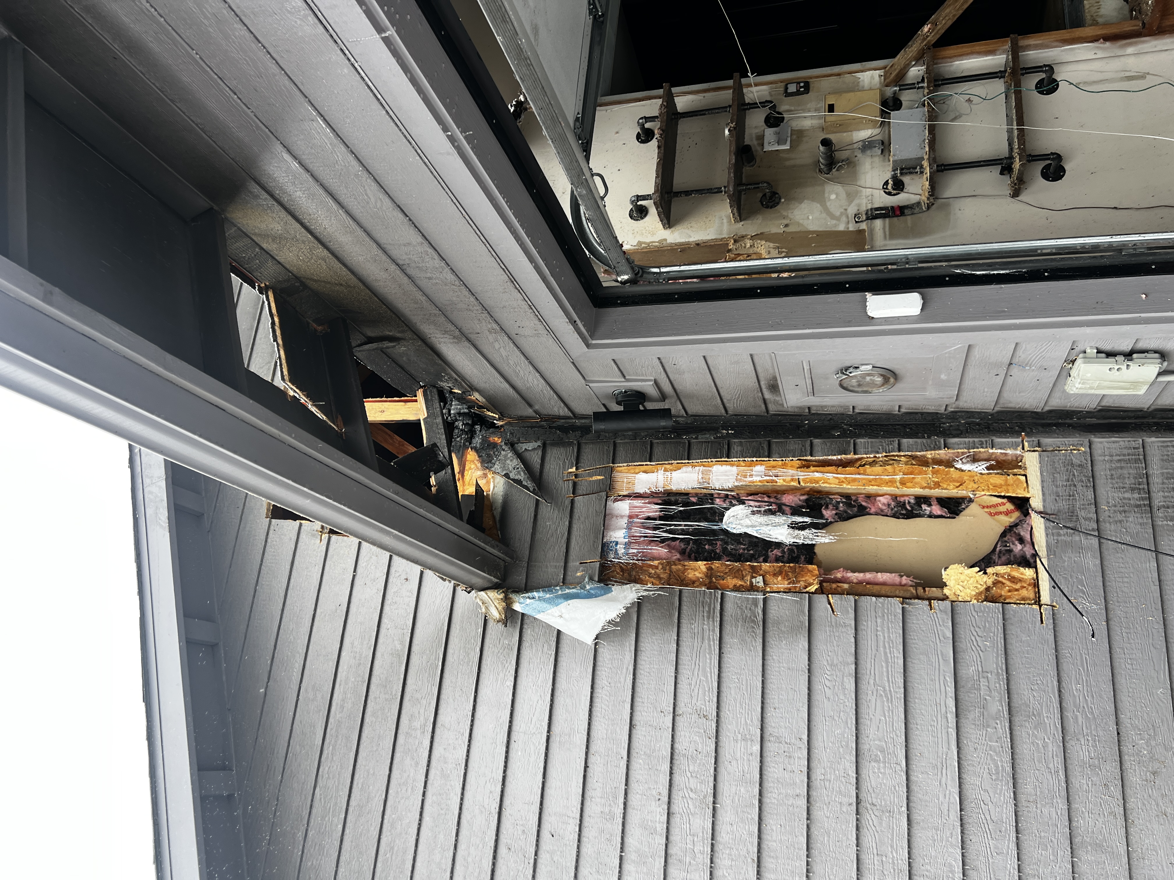 Upon investigation, the cause of the fire was found to be an electrical fault in the wiring of the home adjacent to the grounding rod. This condition, called a floating neutral, can cause large imbalances in voltage within the wiring, leading to breakers tripping and the potential for a fire. This is a situation that requires the urgent attention of a licensed electrician to correct.