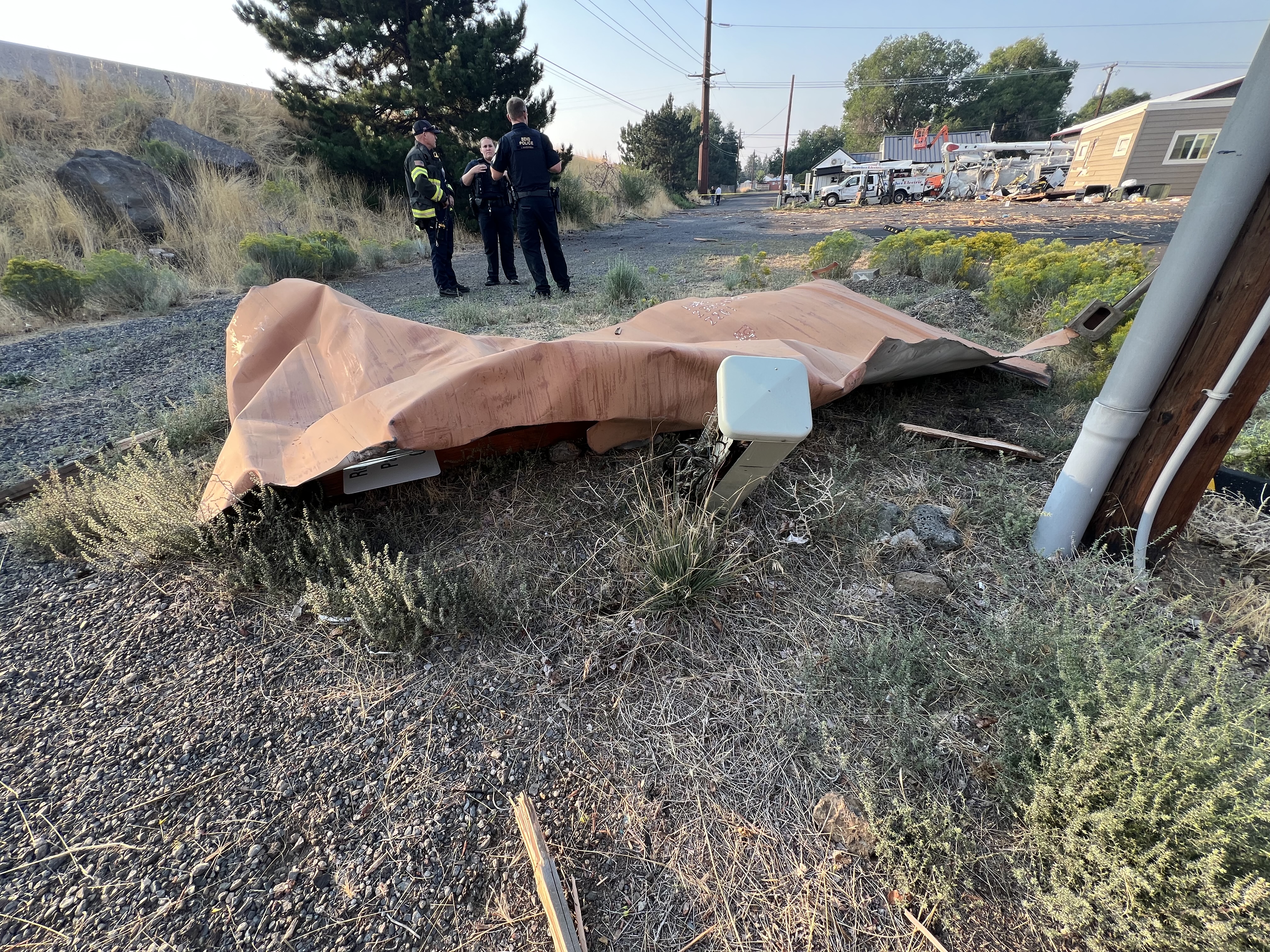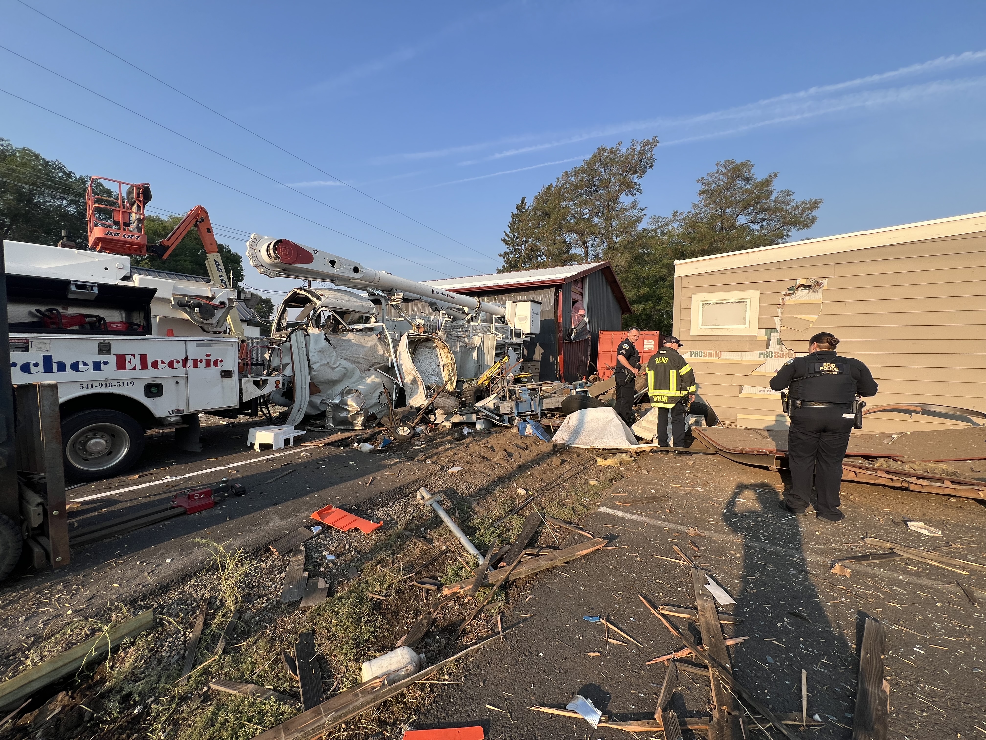 Early in the morning of Friday, August 29, 2025, multiple 911 callers across Bend reported hearing a loud explosion, but there was no identified location or source for the explosion. A few minutes later, at 5:34 am, a 911 caller reported multiple cars striking debris on the Bend Parkway, with one of the vehicles sustaining a punctured fuel tank. Fire crews arrived on scene and were able to mitigate the fuel leak. The source of the debris was found to be a large explosion that occurred at Kercher Electric, 132 NE Yale Avenue. A shipping container located outside the business had exploded, resulting in several businesses in the area sustaining damage to windows, doors, and walls. Two businesses, Kercher Electric and the neighboring Arbor Builders, sustained significant structural damage and were tagged "Do Not Occupy" by the City of Bend Building Department. A total of six businesses received some degree of damage as a result of the explosion. All the businesses were unoccupied at the time of the explosion due to the early hour.