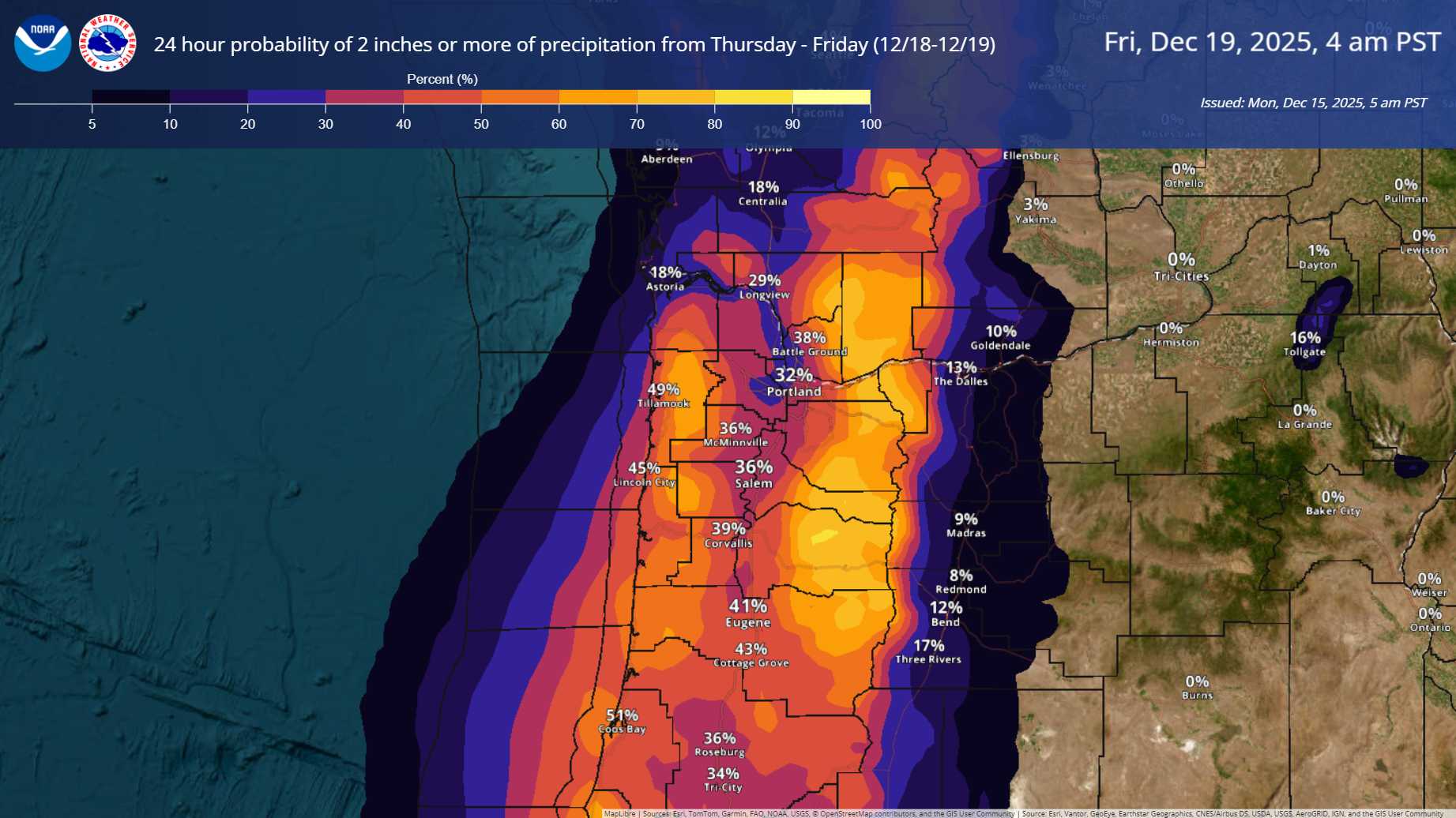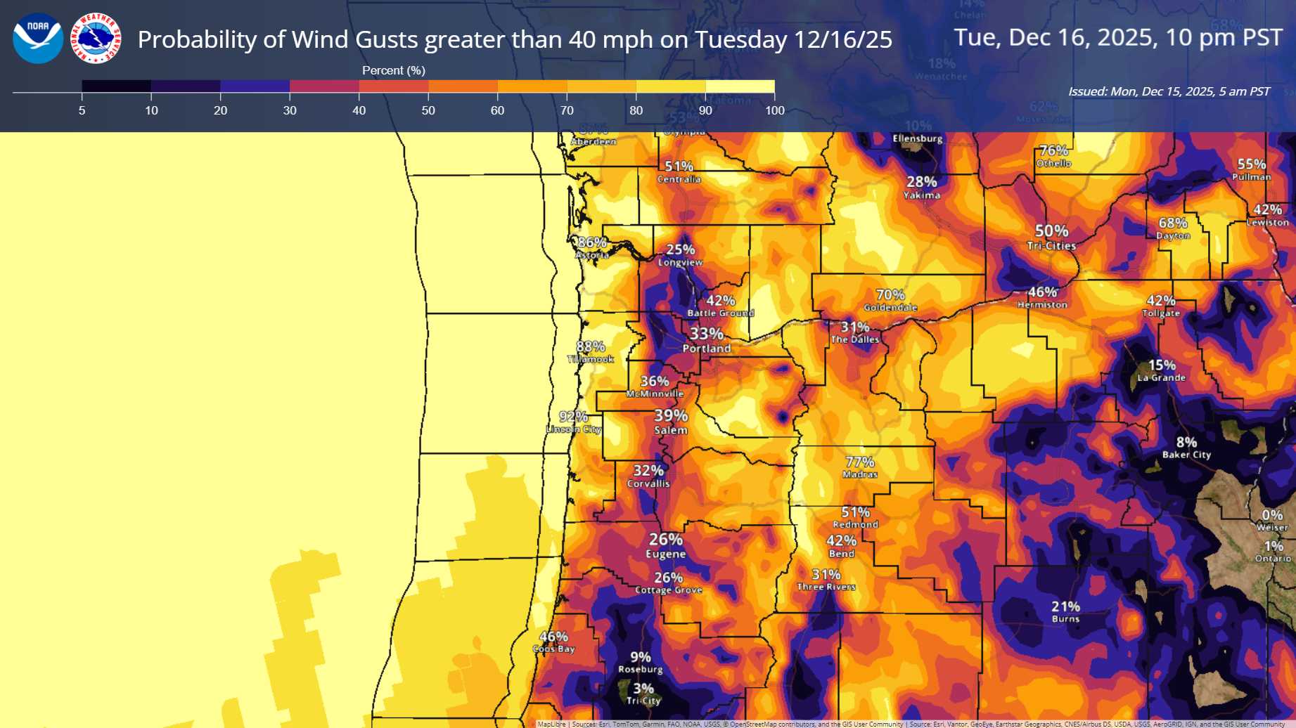 Según el último informe del Servicio Meteorológico Nacional (NWS), existe una alta probabilidad de que el Condado de Benton experimente otra ronda de fuertes vientos, intensas lluvias y crecida de los ríos. Se pronostican que los vientos sostengan velocidad de alrededor de 20 mph con ráfagas de hasta 40 mph. Se estiman grandes cantidades de lluvia entre el jueves y el viernes, con la mayor parte concentrada el jueves entre las 7 a.m. y las 10 p.m.