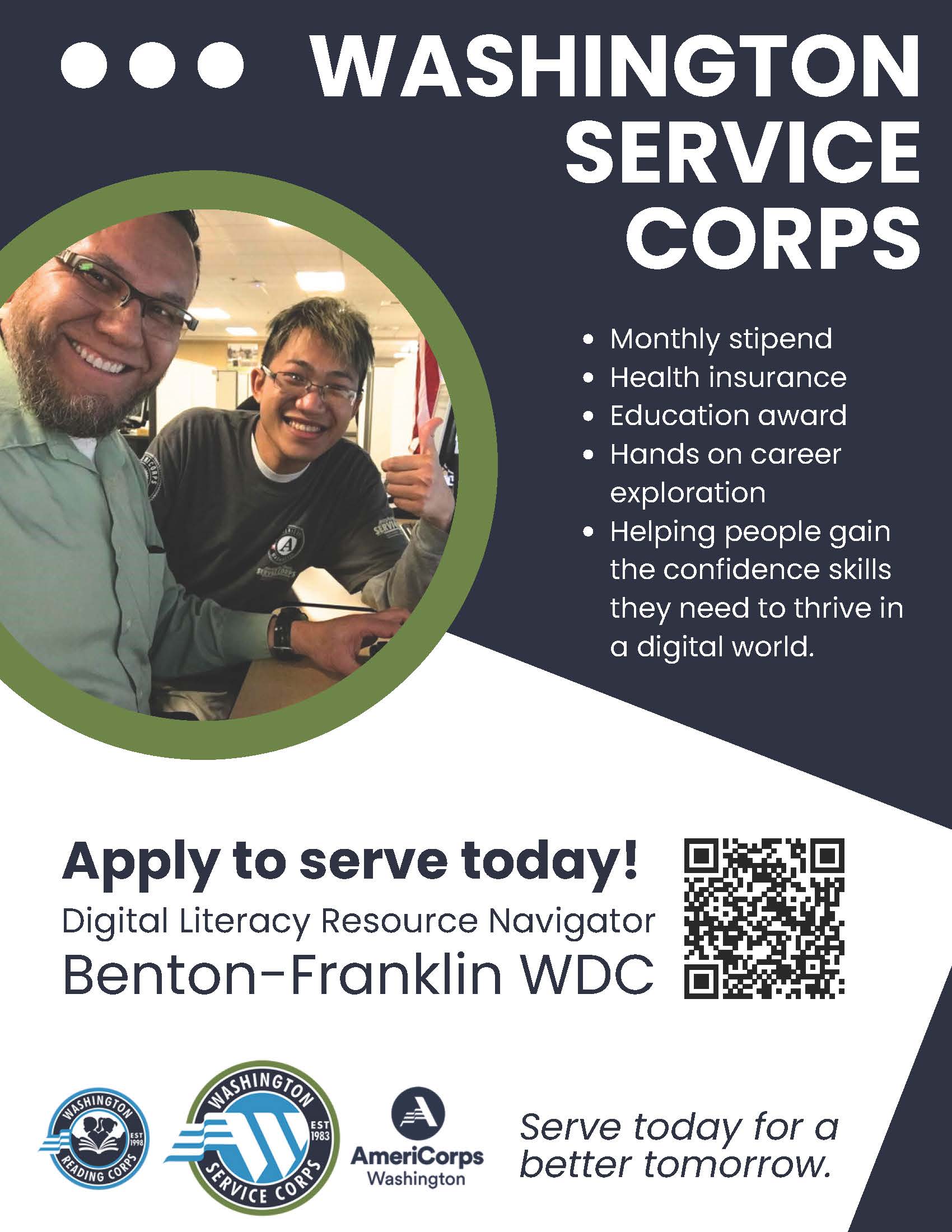The Benton-Franklin Workforce Development Council is proud to partner with Washington Service Corps and WorkSource Columbia Basin to offer an AmeriCorps member the opportunity to contribute to the meaningful work we do in our community.