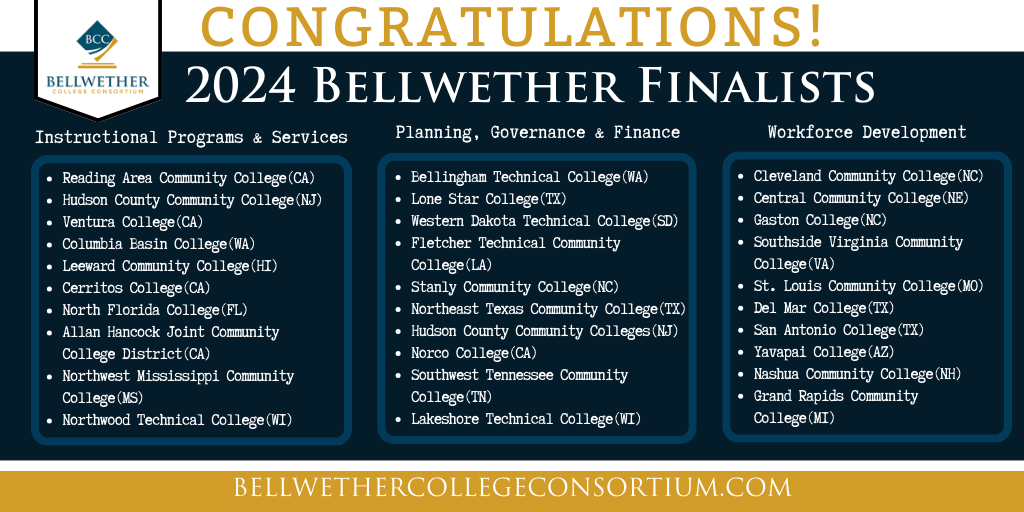 Pasco, WA, November 21, 2023 - Columbia Basin College (CBC) is proud to announce that we have been named as a Bellwether Finalist and will compete for the 2024 Bellwether Award at the 30th Annual Community College Futures Assembly (CCFA). The CCFA will be in San Antonio in February 2024.