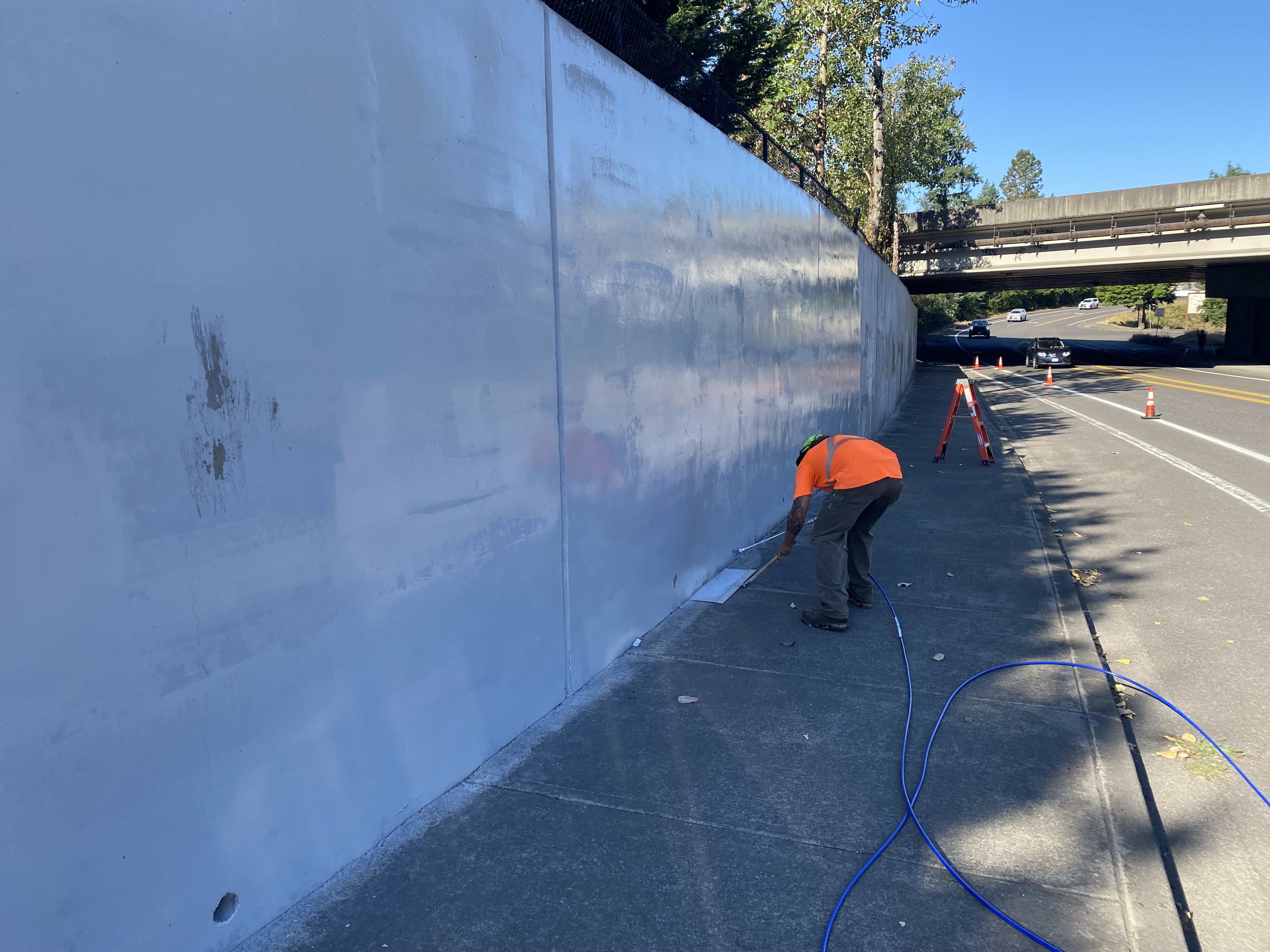 Vancouver, Wash. – Clark County Public Works is partnering with community members to paint a mural on the retaining wall on the north side of Northeast 117th Street, just west of Northeast Highway 99 and across from Klineline Pond/Salmon Creek Regional Park. The mural, which will feature salmon and a watershed pollution prevention theme, will be painted by more than 60 artists during the first two weekends of September (Saturday, Sept. 6; Sunday, Sept. 7; Saturday, Sept. 13 and Sunday, Sept. 14).