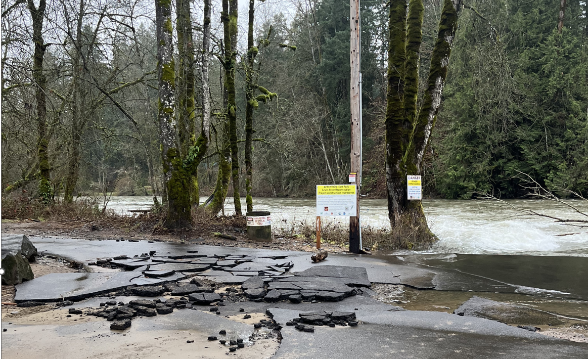 The boat launch at Daybreak Regional Park was significantly damaged when the East Fork Lewis River rose and flooded the park. While the park has reopened, the boat launch will remain closed until it is repaired. At this time, Public Works does not have an estimated timeline for reopening the boat launch.