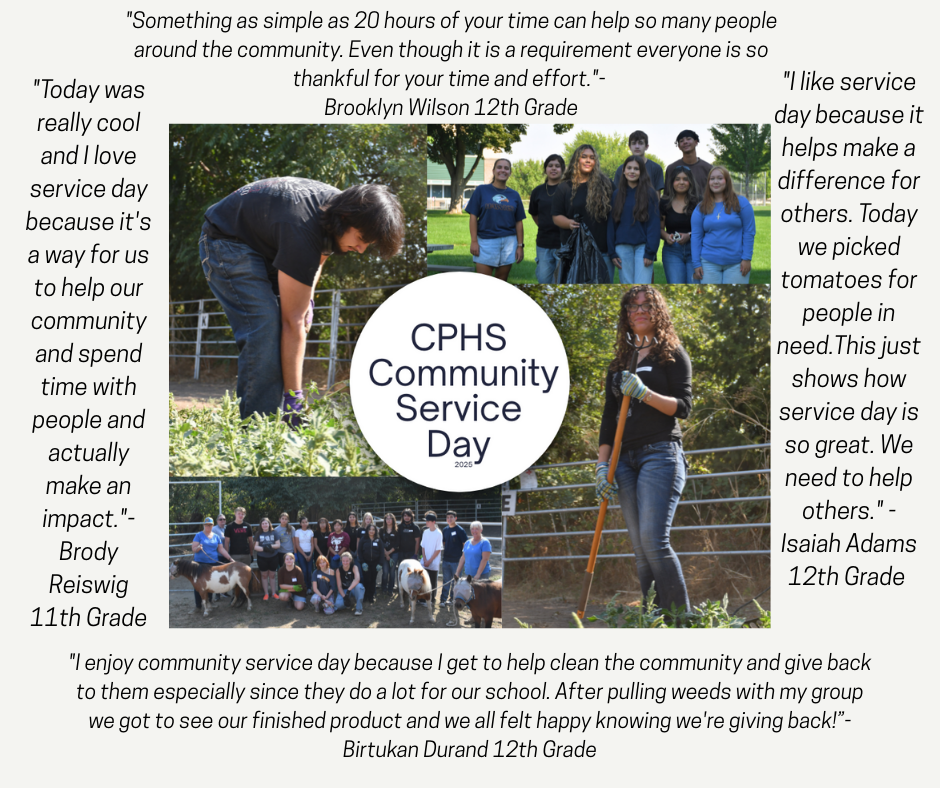 For many students, the day offered an important lesson in connection and responsibility. “I enjoy community service day because I get to help clean the community and give back to them especially since they do a lot for our school,” said Birtukan Durand, a senior at CPHS. “After pulling weeds with my group we got to see our finished product and we all felt happy knowing we’re giving back.”