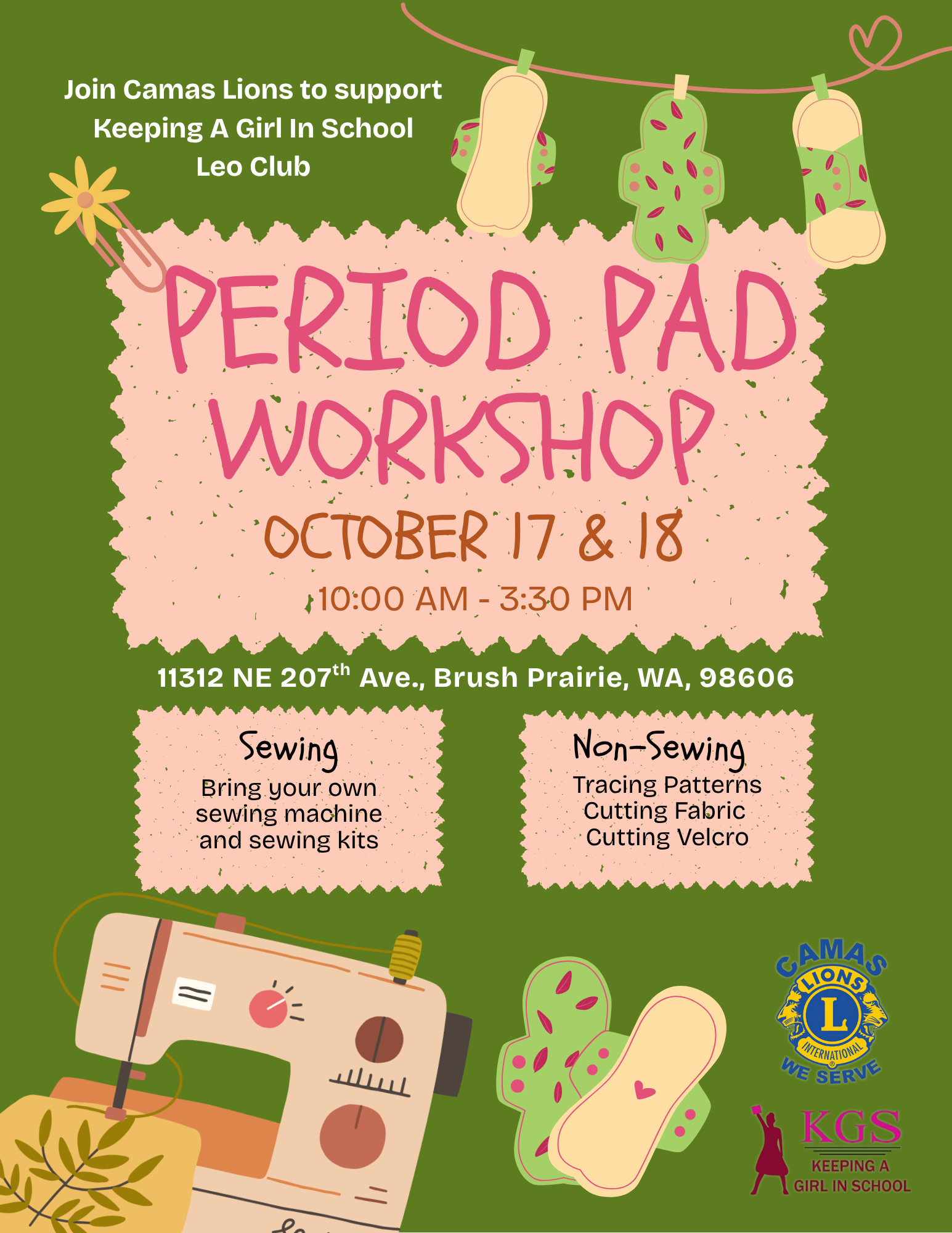 Press Invited: Camas Lions Club Hosts Community “Period Pad Project”