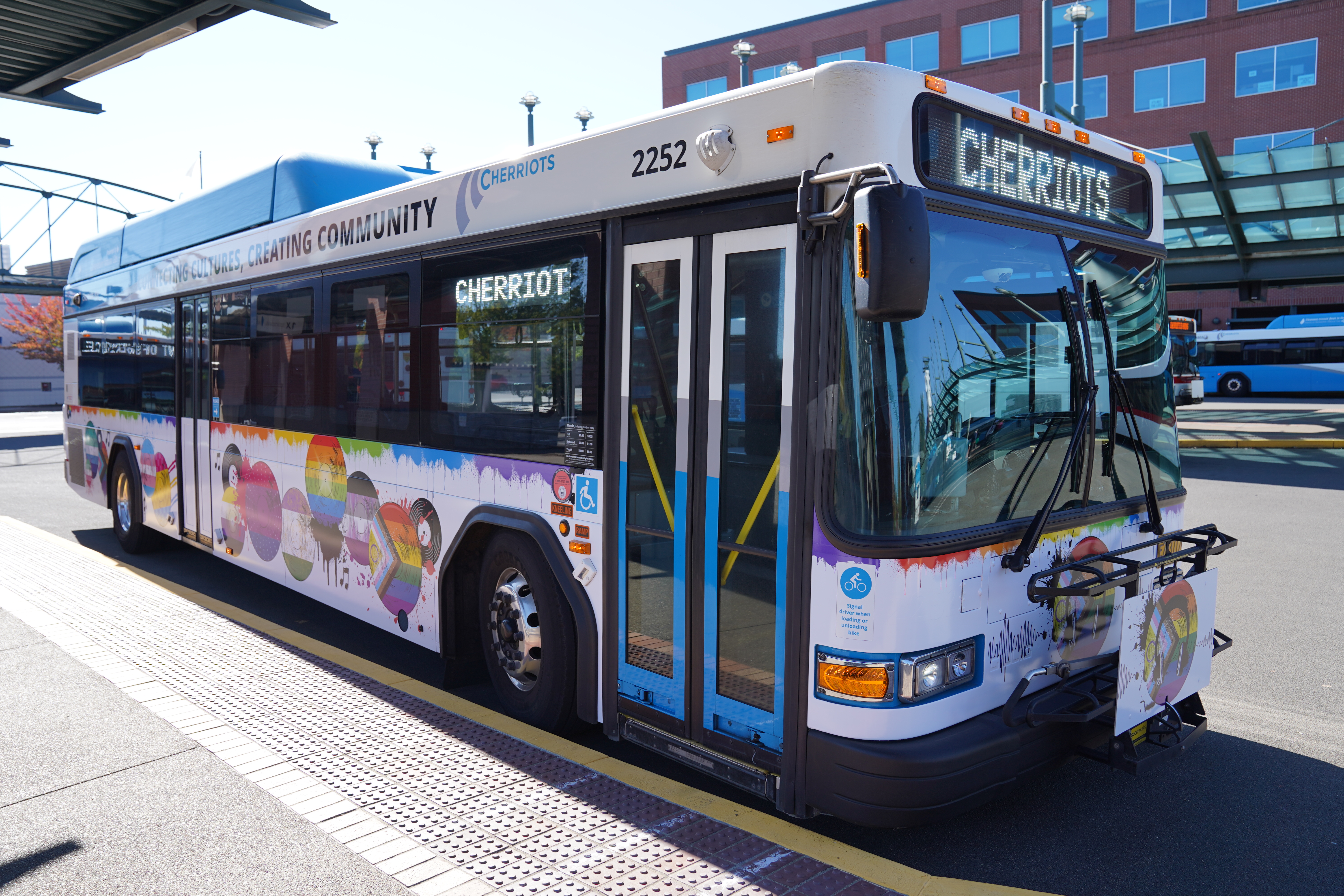Cherriots is excited to announce the unveiling of its community-designed Pride Bus, debuting this week. This unique bus wrap, created by a local artist and Cherriots employee, was selected by a Board subcommittee as part of Cherriots’ ongoing community and culture-focused bus wrap campaign.