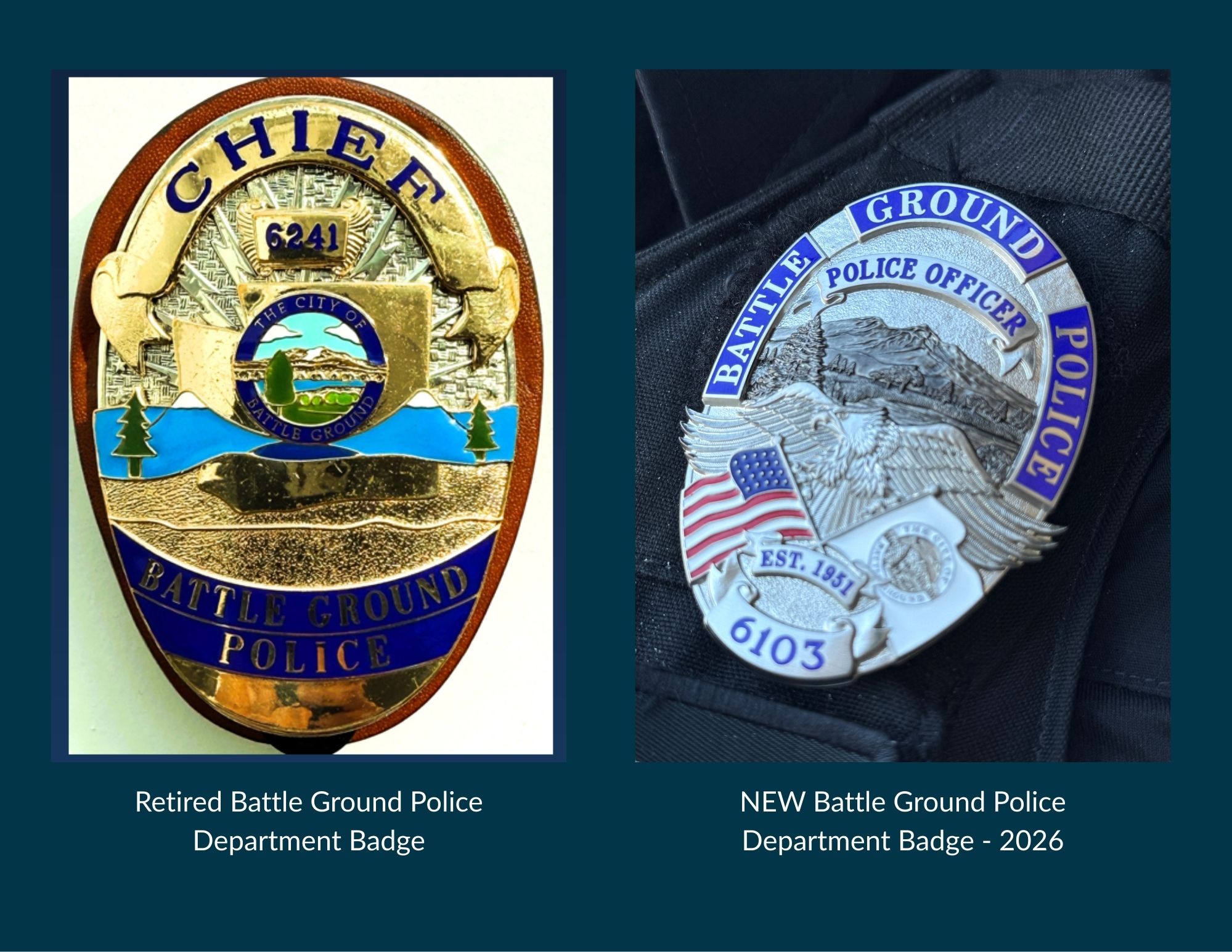 The Battle Ground Police Department will begin transitioning to the new badge this month (Janaury 2026).