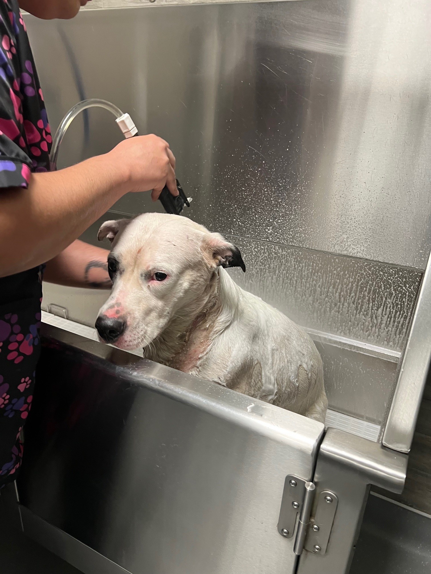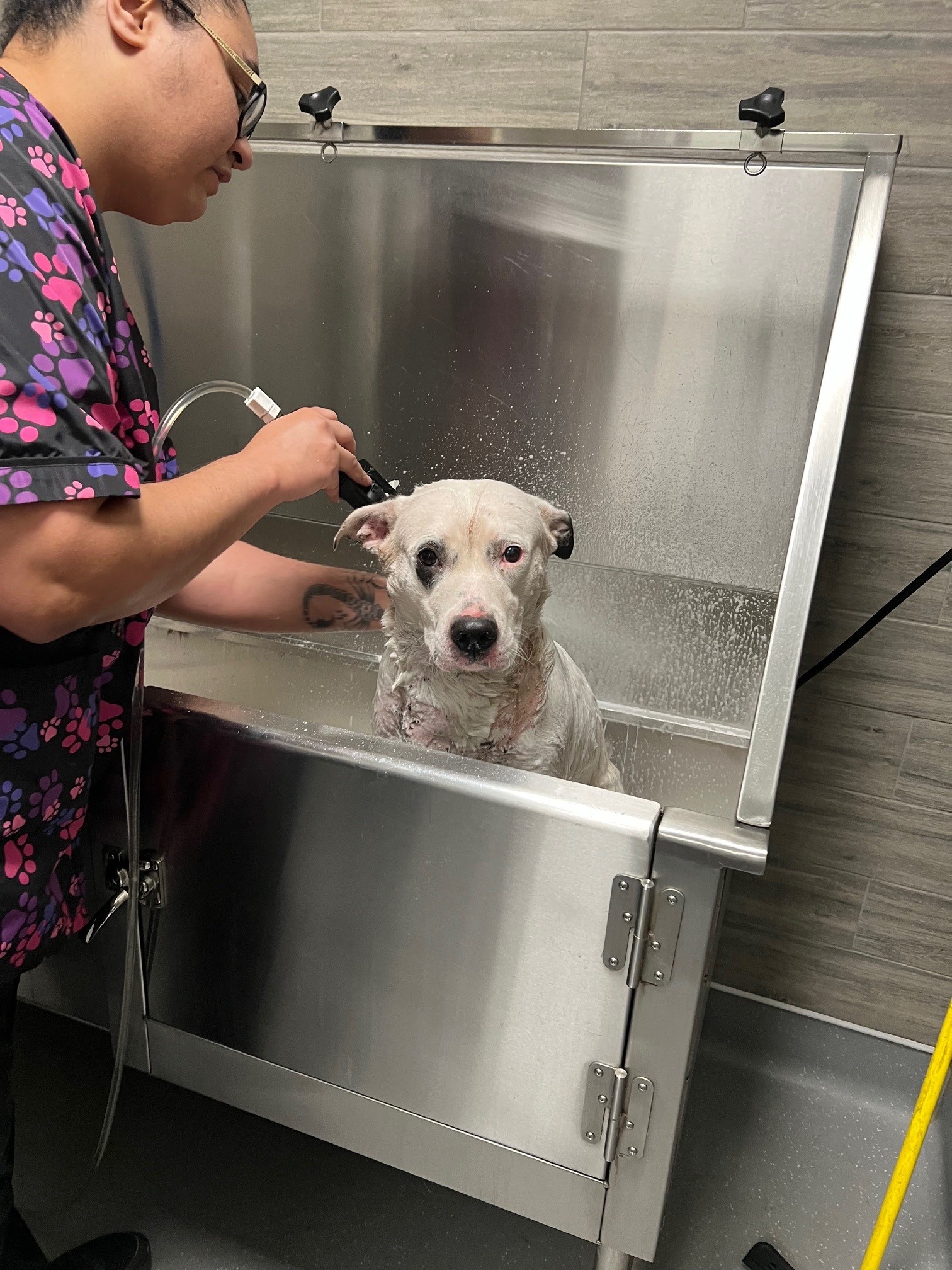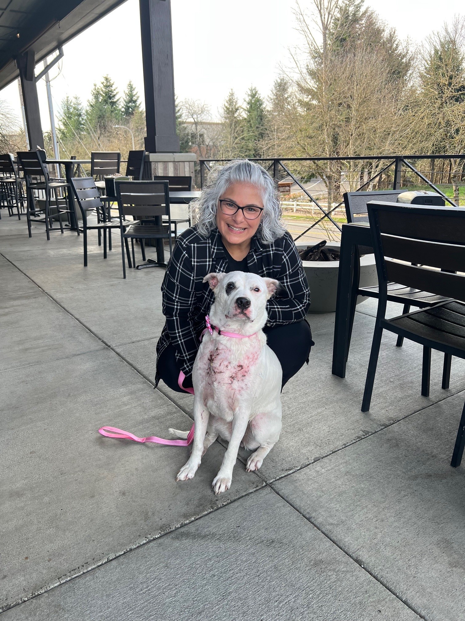 Sweetie has continued to be surrounded by tremendous community support. She was treated to a spa day at EarthWise Pet in Happy Valley OR, where she was generously gifted a basket of food along with a brand-new pink collar and leash to take with her to her forever home. She also stopped by Valley Public House to say hello and enjoyed some relaxing time on the patio. We are grateful to these local businesses and community members for their kindness.