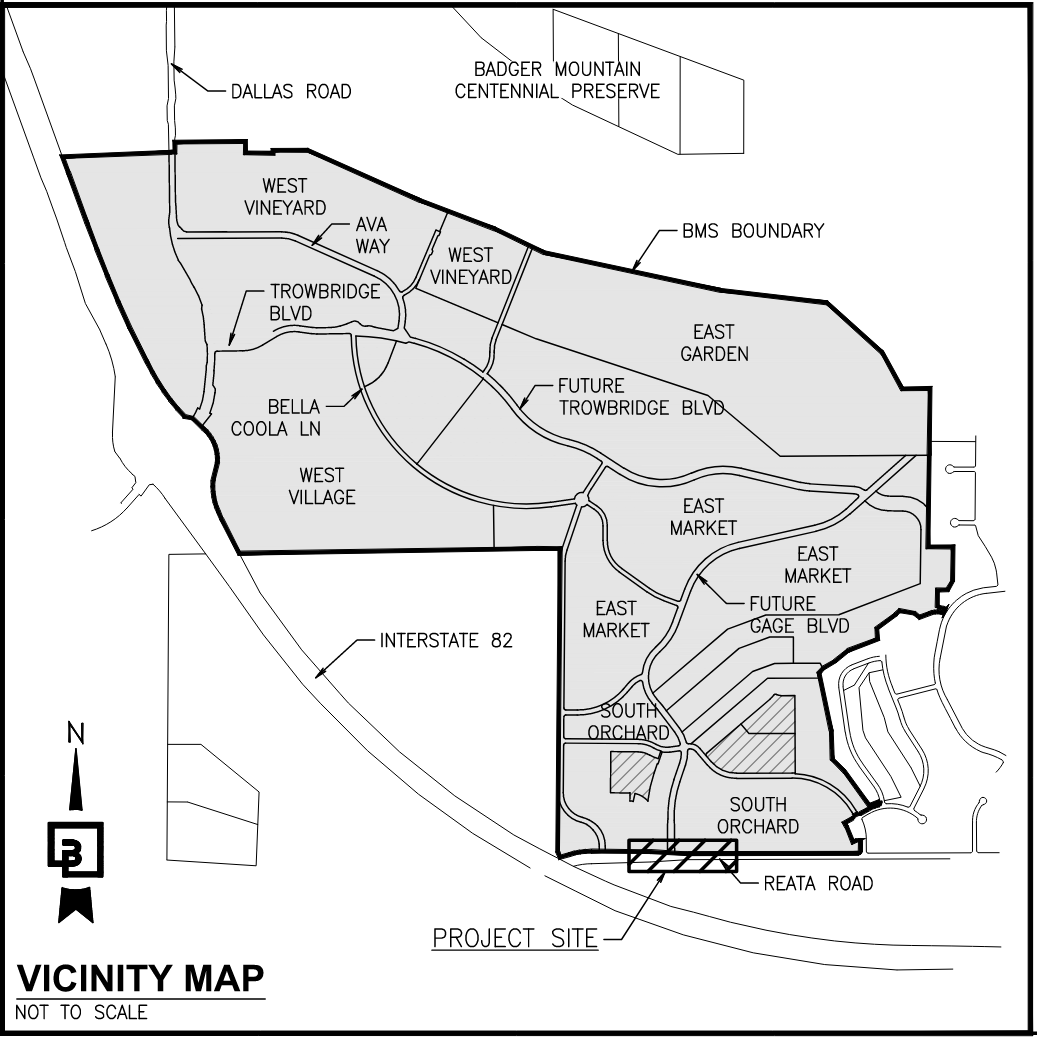 The roundabout is being constructed by the developer of Badger Mountain South and will provide a new intersection connection for the Gage Boulevard extension while creating an additional access point to the South Orchard community currently under development. The project is designed to improve traffic circulation, safety, and long-term connectivity in the area.