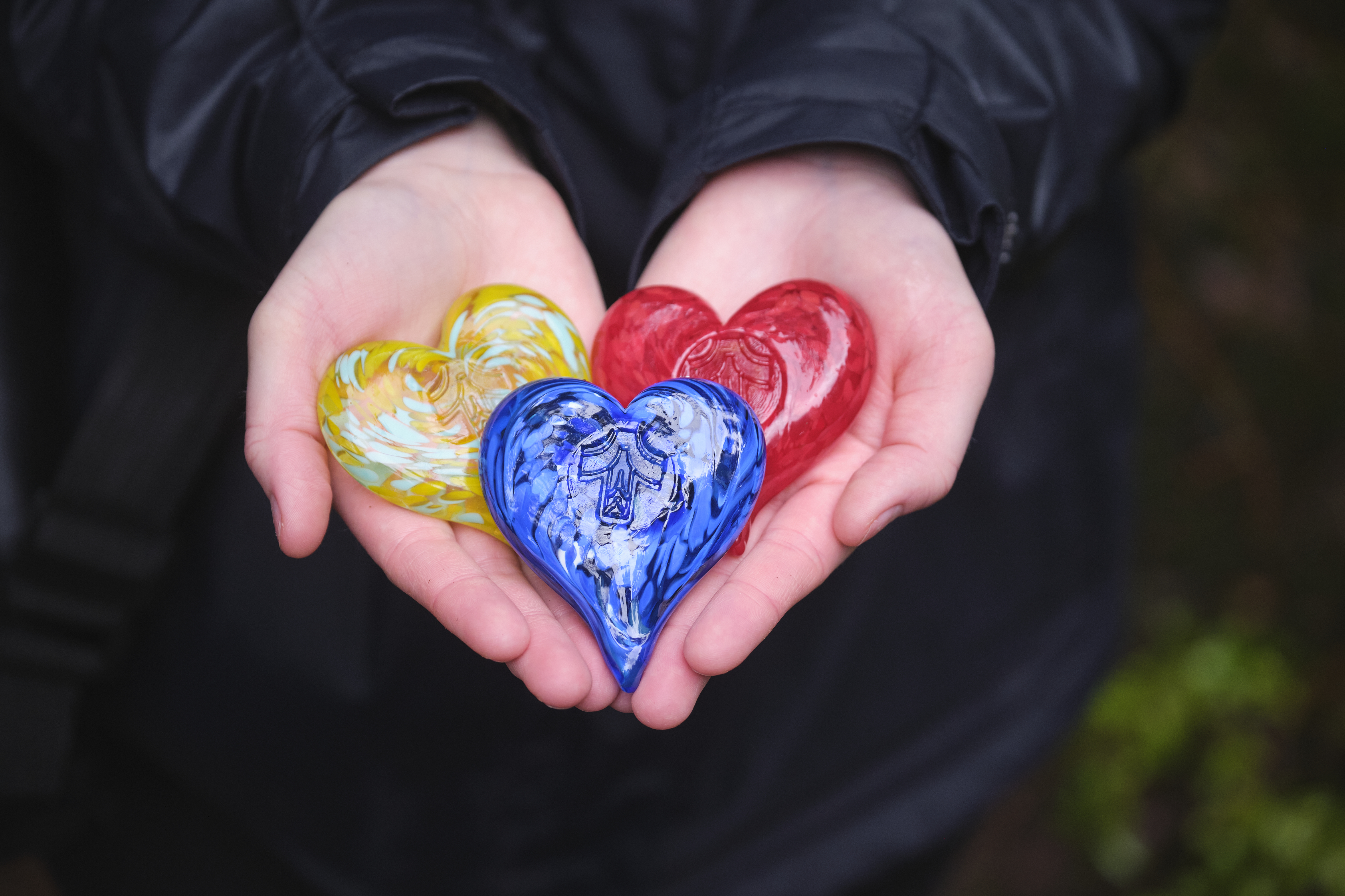 Each glass heart is handcrafted by artist Timothy Jaquet of Olympia, Washington. Community members who find a heart are encouraged to snap a photo and use the hashtag #ShareTheLoveTualatin
