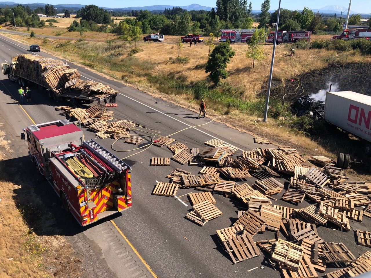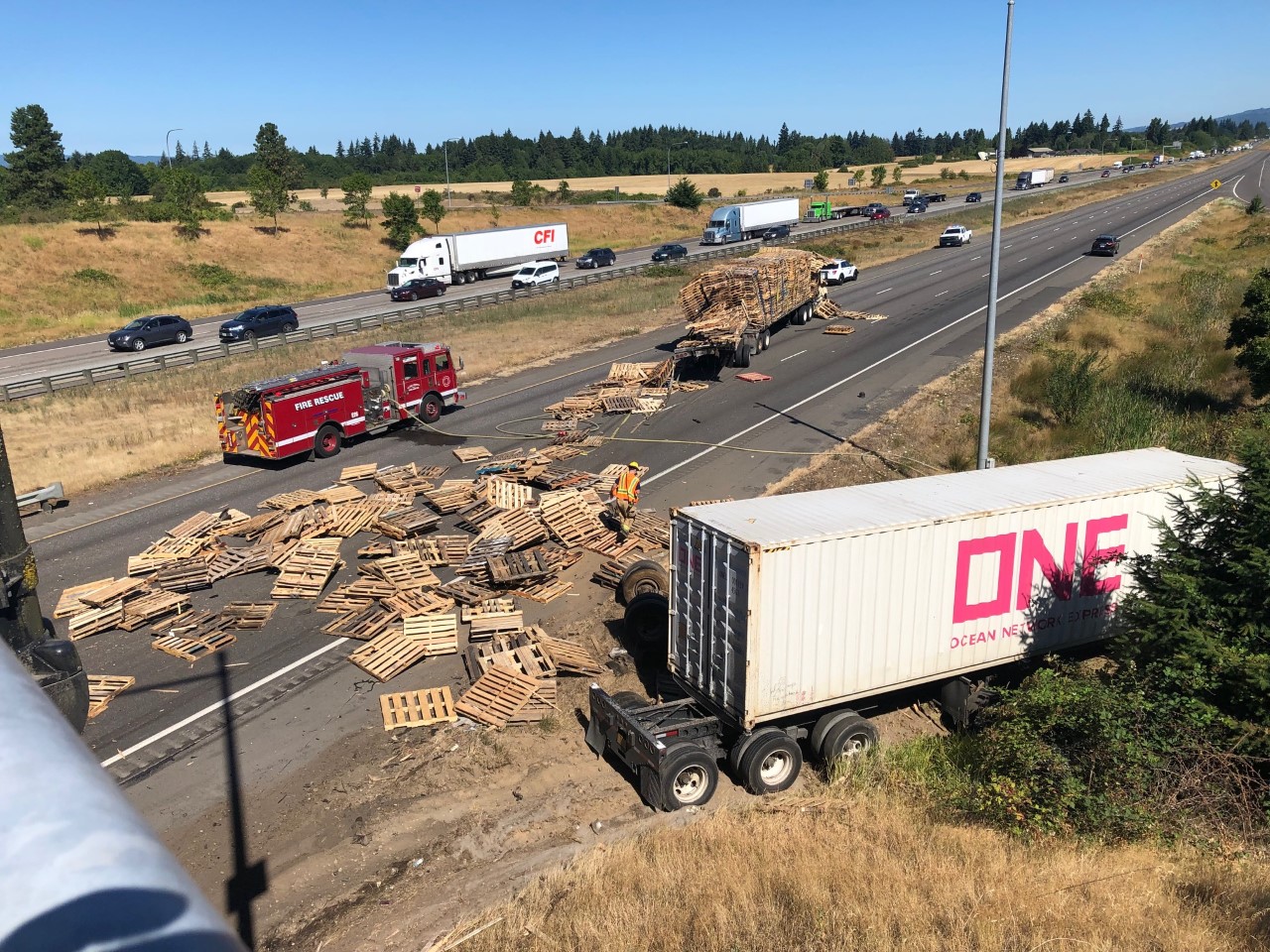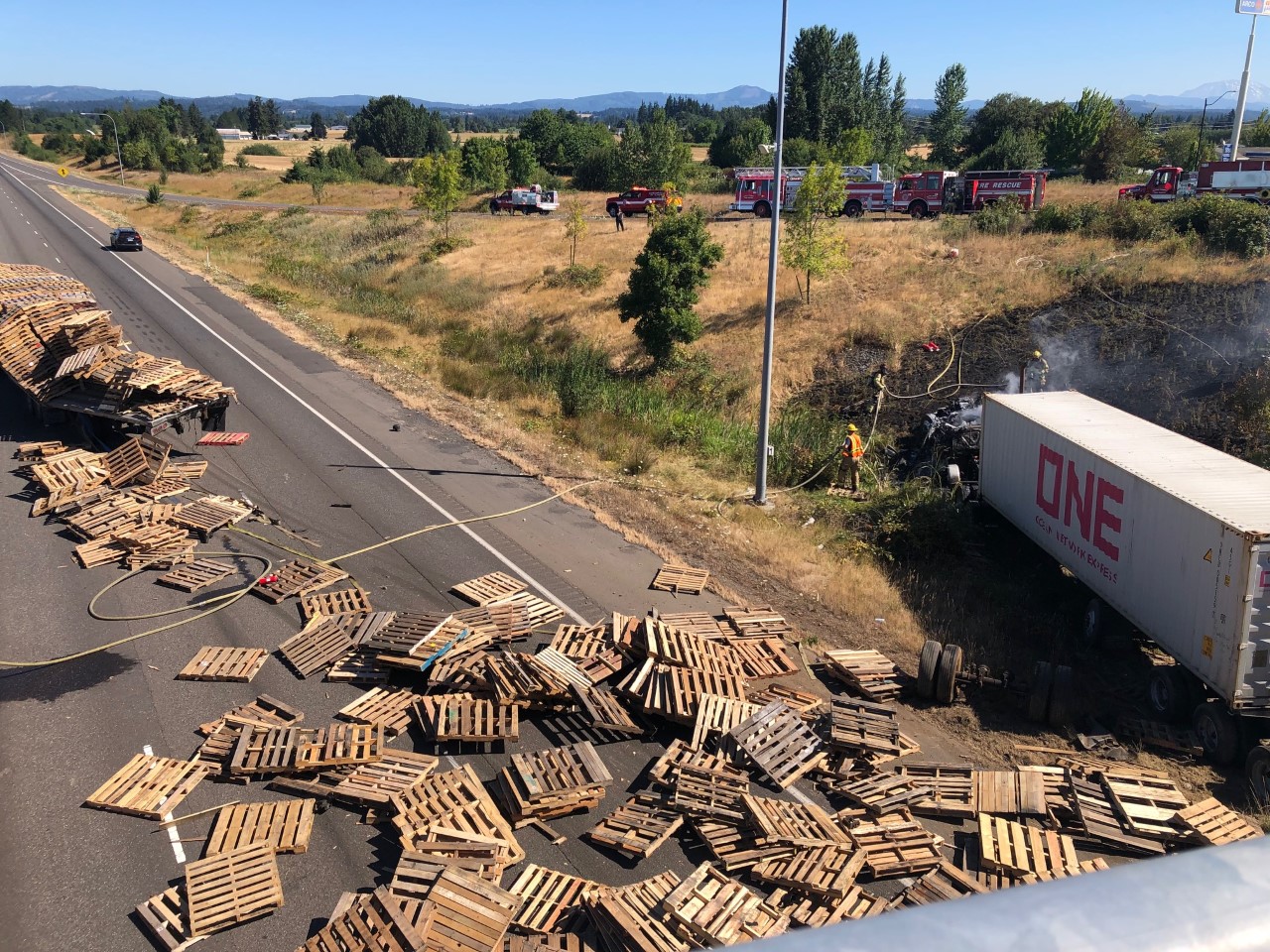 Clark-Cowlitz Fire Rescue Responds To Two Collisions With A Fire On I-5 Near Ridgefield (Photo) - 07/19/21
