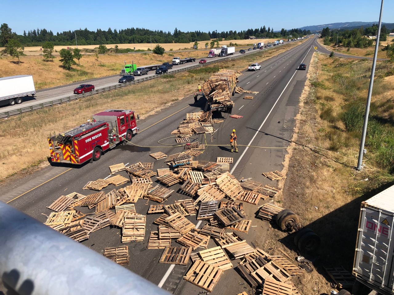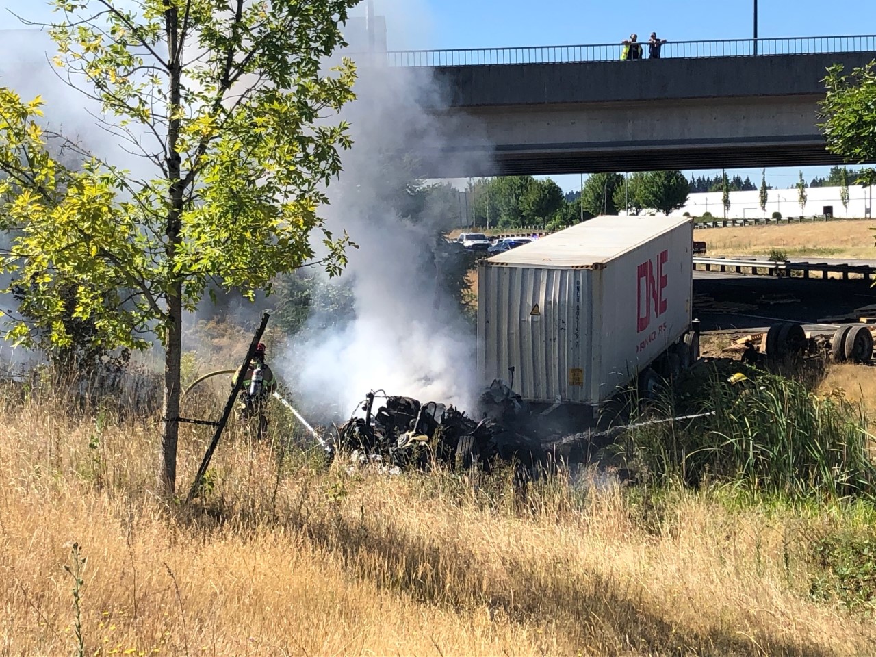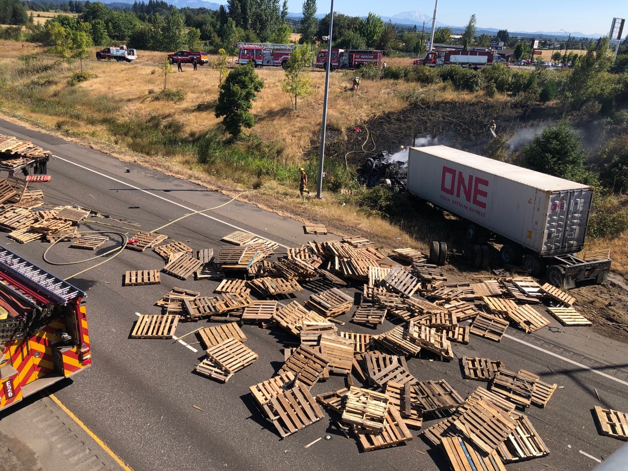 Clark-Cowlitz Fire Rescue Responds To Two Collisions With A Fire On I-5 Near Ridgefield (Photo) - 07/19/21