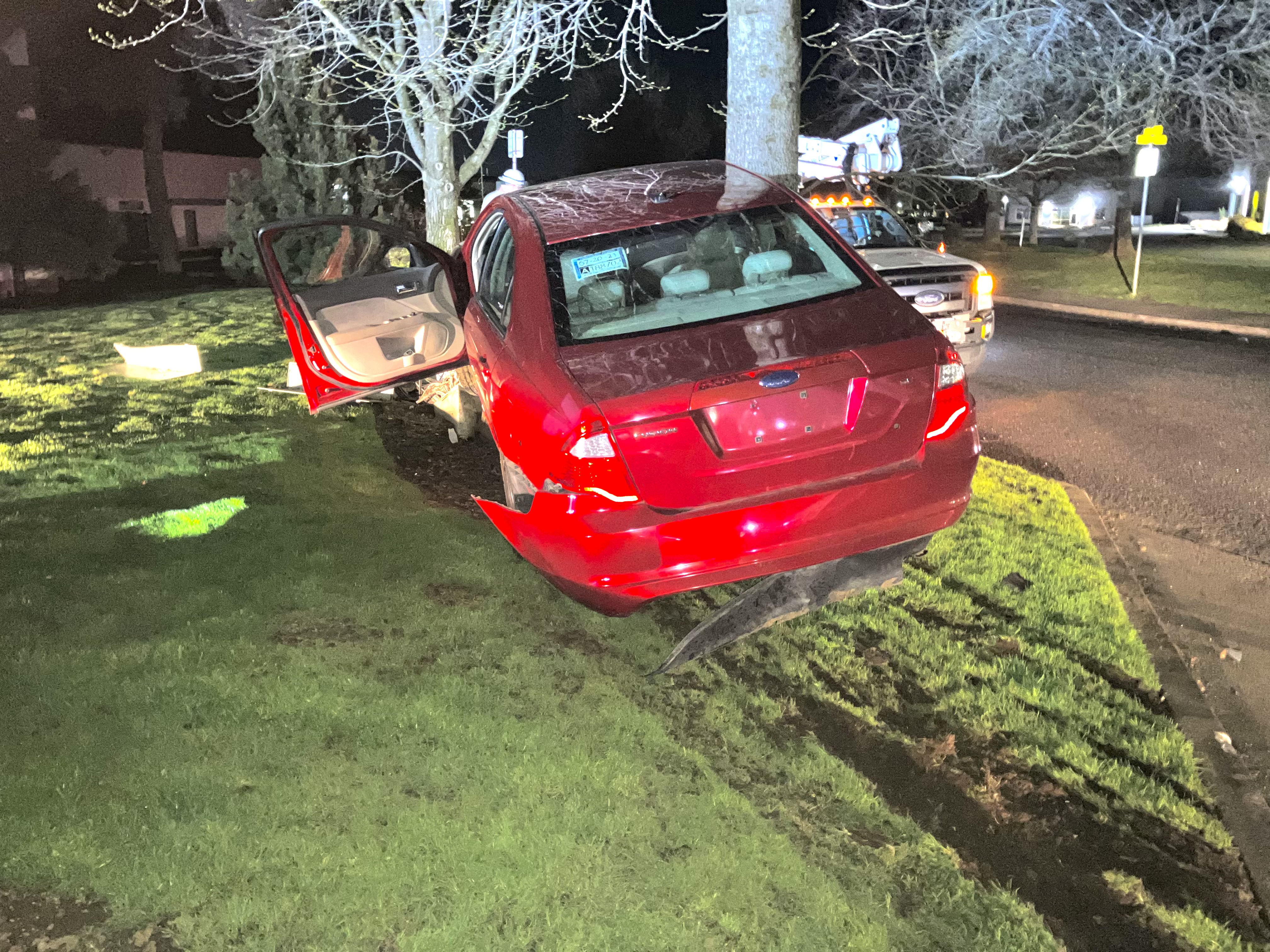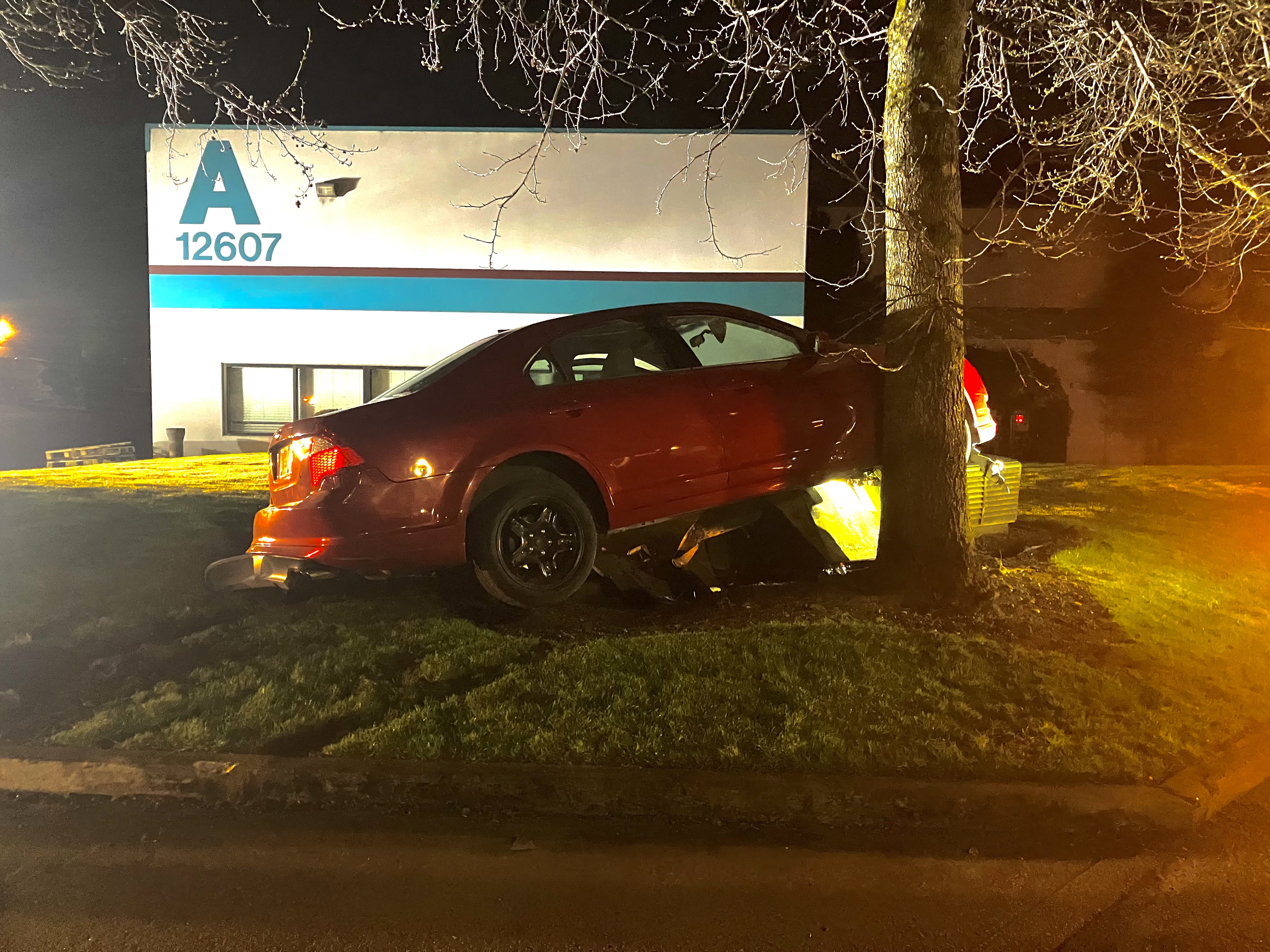 The vehicle was found to have been reported stolen to Portland Police a few days prior. Evidence of recent illicit drug use was observed inside the car. The vehicle was seized by the Sheriff's Office pending further investigation. The suspect driver has not yet been identified by law enforcement. He was transported to an area hospital for evaluation of minor injuries sustained during the collision.