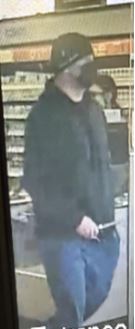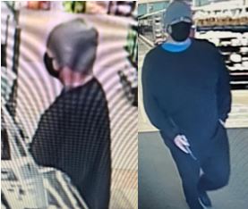 In the robbery on 4/8/24, the suspect was described as a white male, approximately 6-00 tall, medium build, wearing a dark-colored sweater, sweatpants, a black COVID-style mask, and a gray beanie.