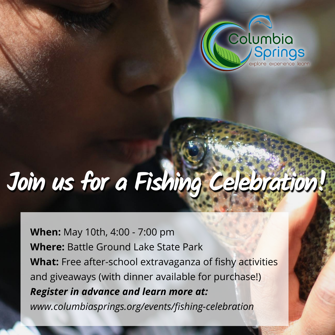 - Although Columbia Springs will not be hosting actual fishing at this Fishing Celebration, participants can get comfortable with fishing gear and techniques on land so that they will feel confident to venture out on the water by themselves, and partners will share fun new information with those who already have experience with fishing. Battle Ground Lake is frequently stocked with Columbia Springs trout and will be open during our event for those kids and licensed individuals who bring their own gear and would like to try their luck after they visit our event.