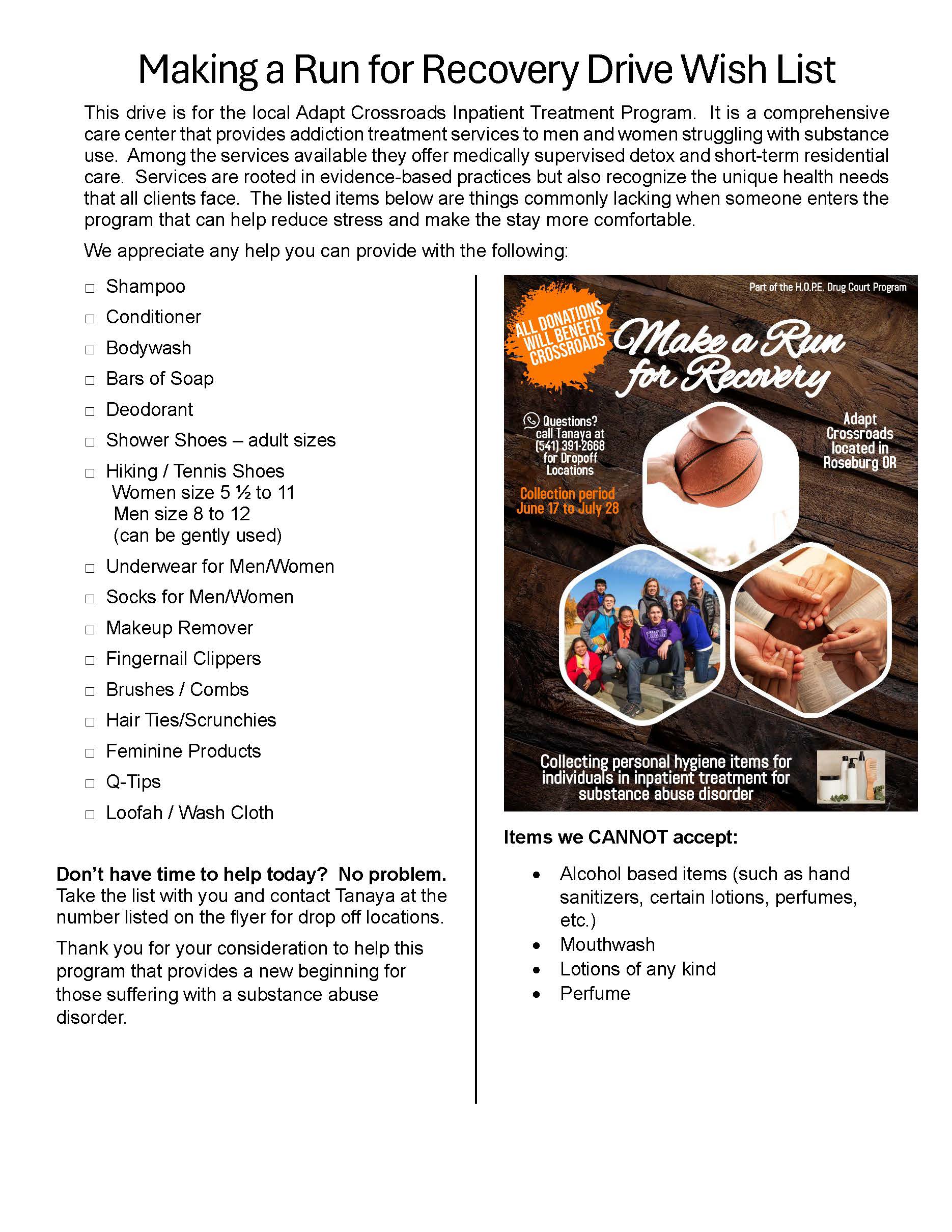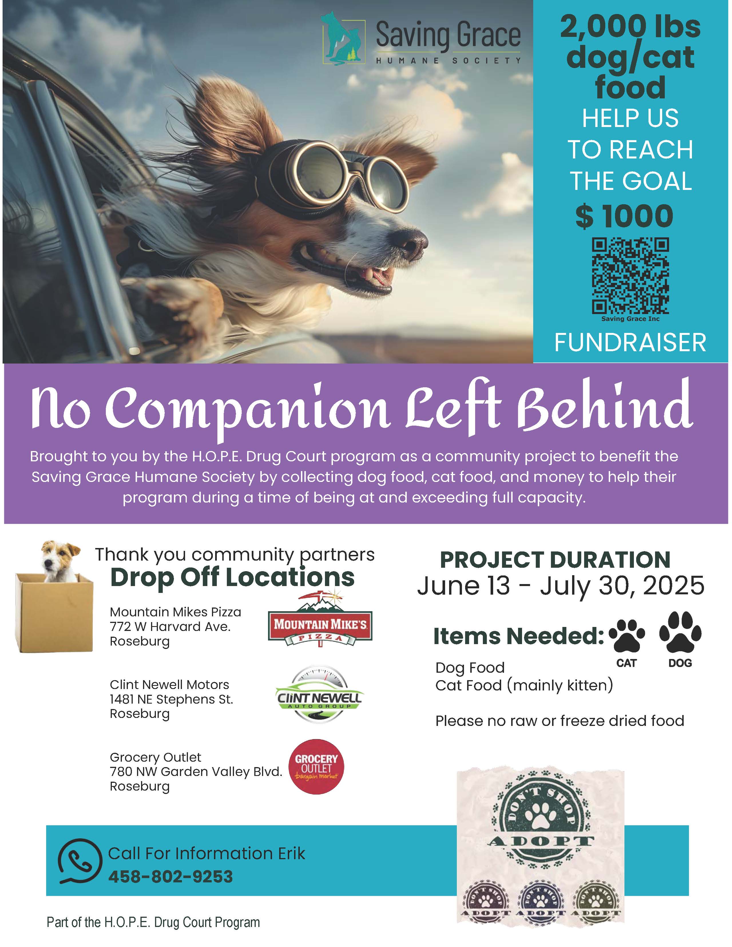 Roseburg, OR — The H.O.P.E. Adult Drug Court will celebrate its 111th graduation ceremony on Tuesday, December 16, 2025, at the Douglas County Fairgrounds – Cascade Hall, beginning at 5:15 p.m. The ceremony will be presided over by The Honorable Robert B. Johnson, who leads the adult drug court program.