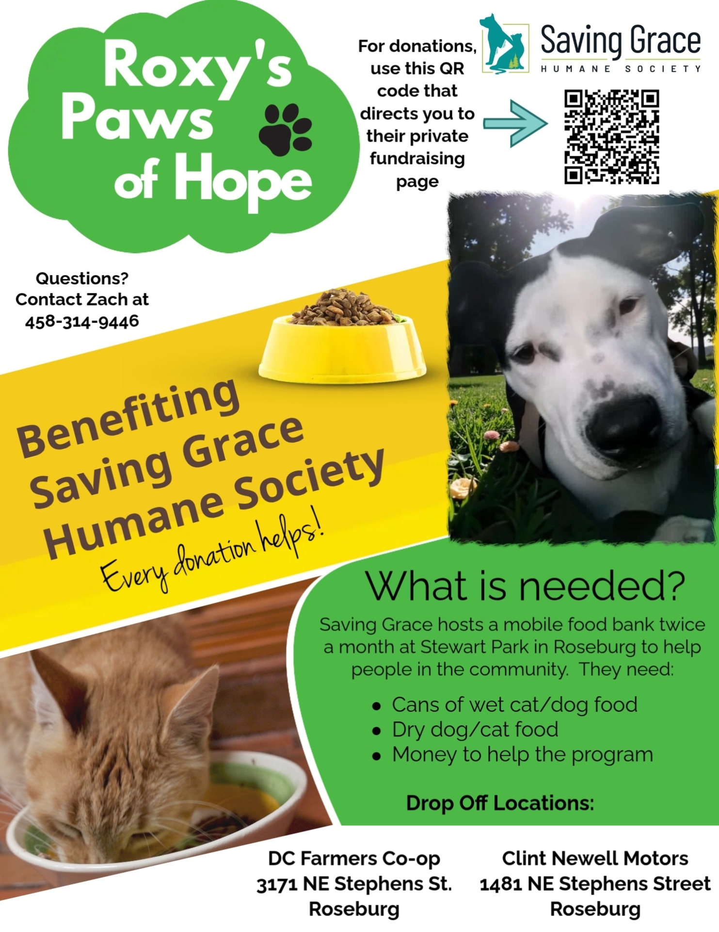 Zach Smith will be at Grocery Outlet on Thursday, March 5, from 1:00 to 3:00 p.m., continuing his collection of dog and cat food to benefit Saving Grace Humane Society. Smith is nearing his final donation goal and is once again reaching out to the community to help bring awareness to the mobile food program twice monthly at Stewart Park that Saving Grace provides to local residents.