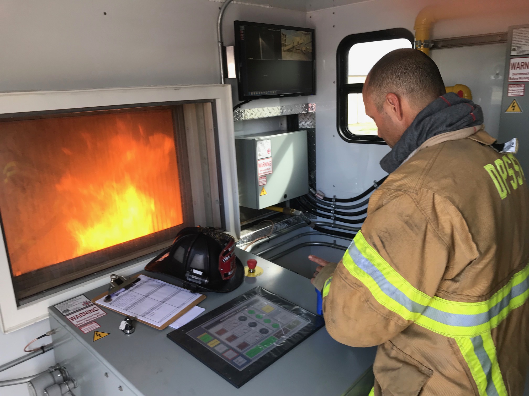 The MFTU contains numerous safety features to minimize participant risk. For propane fires to function, the operator must step on a control pedal while another instructor engages the portable safety pendant. Release of either immediately shuts the unit down. Temperature and propane sensors force operations to occur within safe limits. Should either exceed the allowable range, the unit automatically shuts down, sounds an alarm, and activates ventilation fans.
