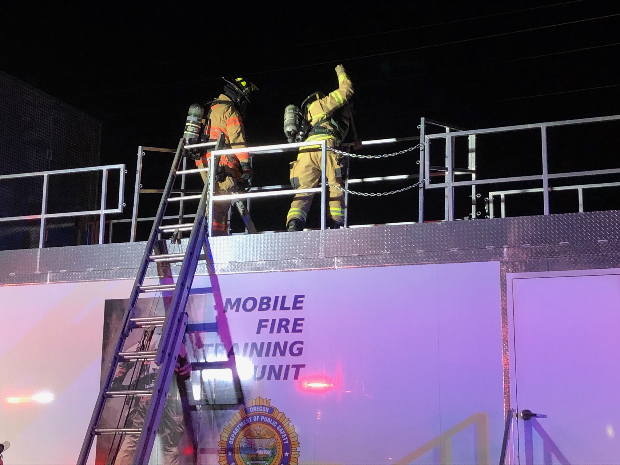 DPSST's Director Eriks Gabliks said "DPSST operates two, 53 foot, Mobile Fire Training Units (MFTU) which are made available around the state on a regional basis. This mobile concept enables DPSST to support local fire training programs and avoids local communities from having to purchase expensive equipment that will have occasional use. The MFTU at Dallas over the last two weeks is DPSST's newest addition to the inventory. This unit cost $500,000 and was funded by a Assistance to Firefighters Grant (AFG) from the Federal Emergency Management Agency (FEMA)."