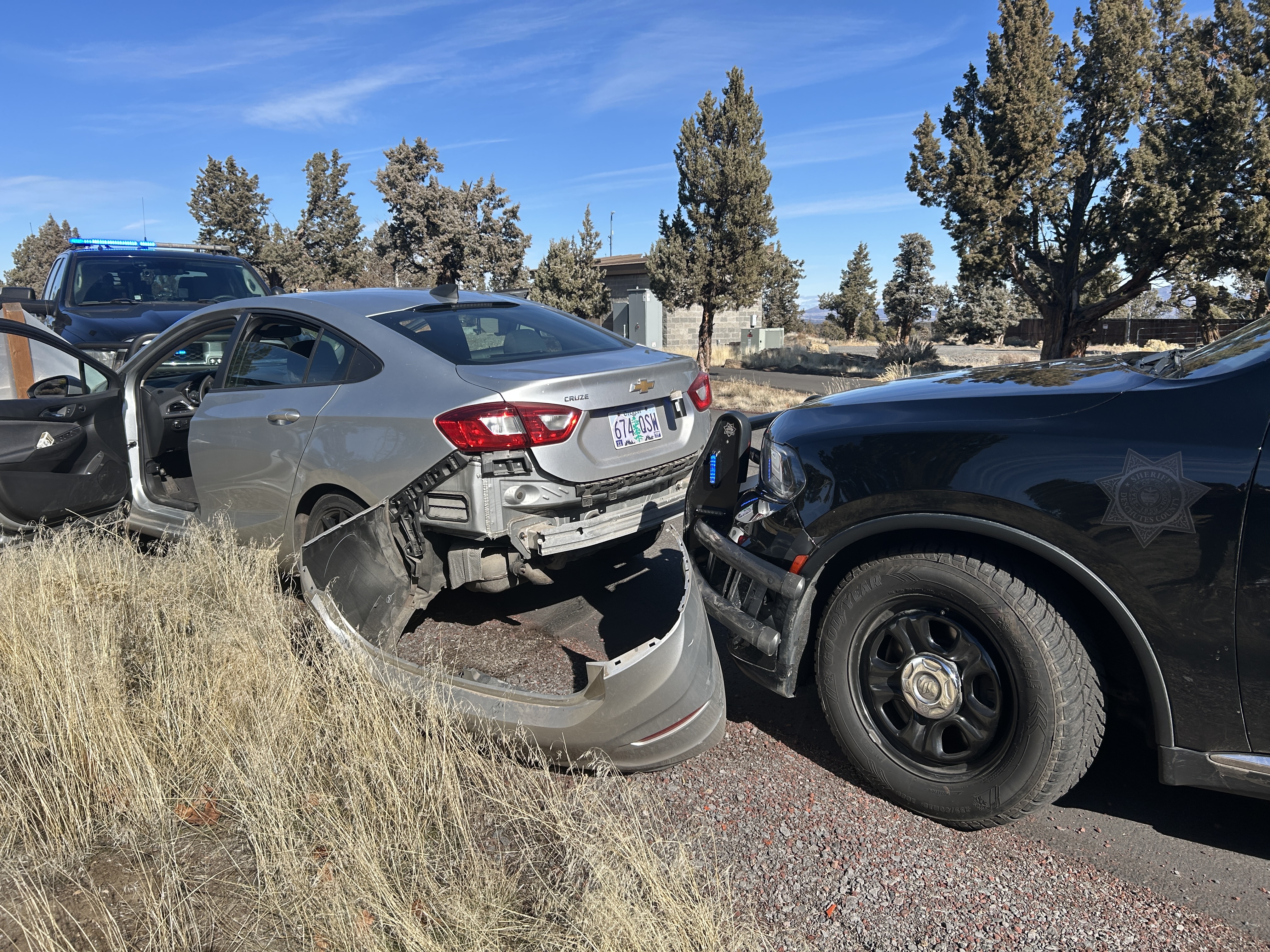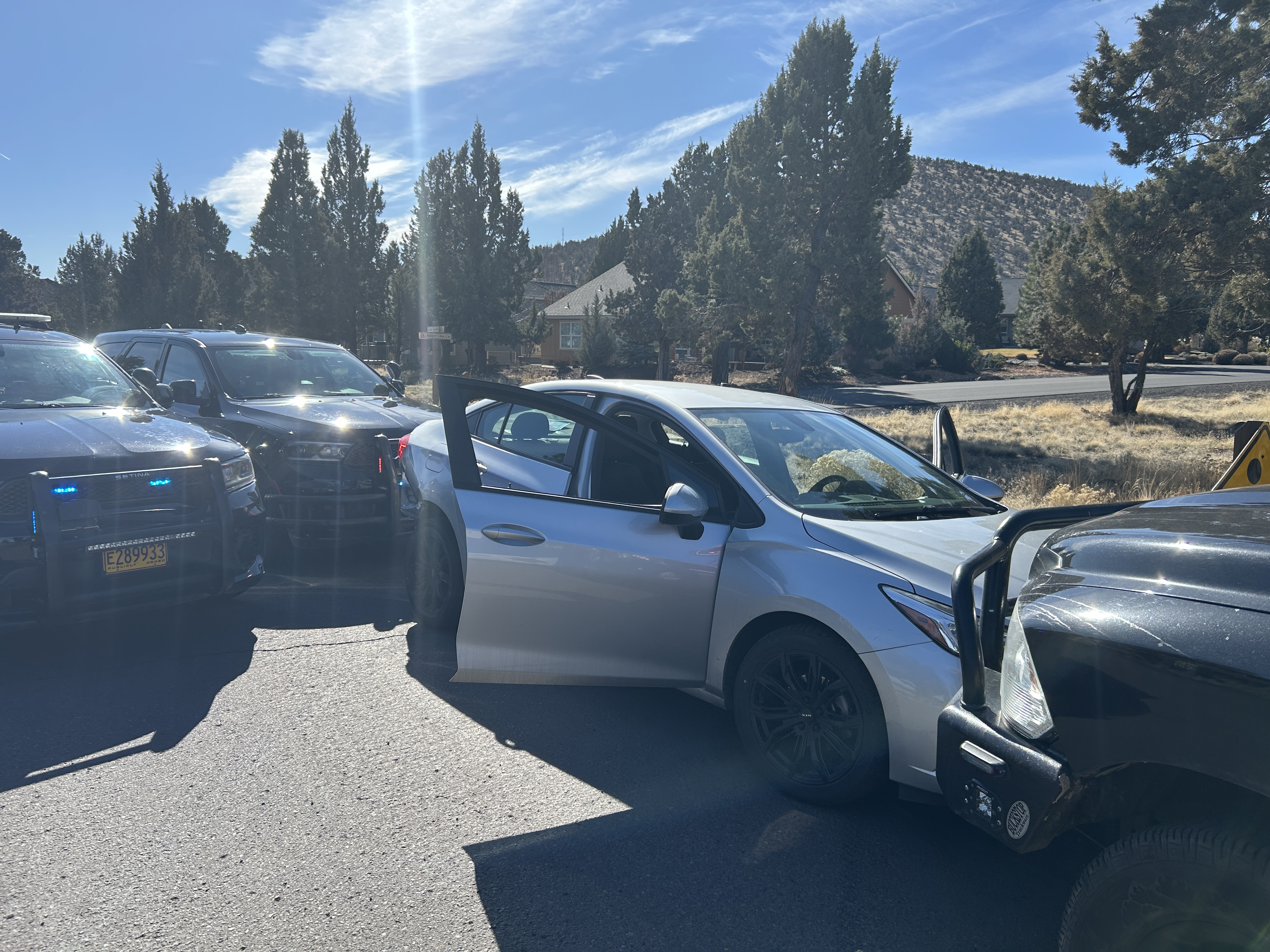 The same vehicle was then observed returning to Sisters at 8:53 a.m. Deputies, assisted by Oregon State Police and the Black Butte Police Department, attempted another traffic stop. The driver fled east on Highway 20, prompting a pursuit. Deputies used a Pursuit Intervention Technique (PIT), but the suspect regained control and sped away at a high rate of speed. The pursuit was terminated for public safety as the vehicle headed toward Tumalo and Bend.
