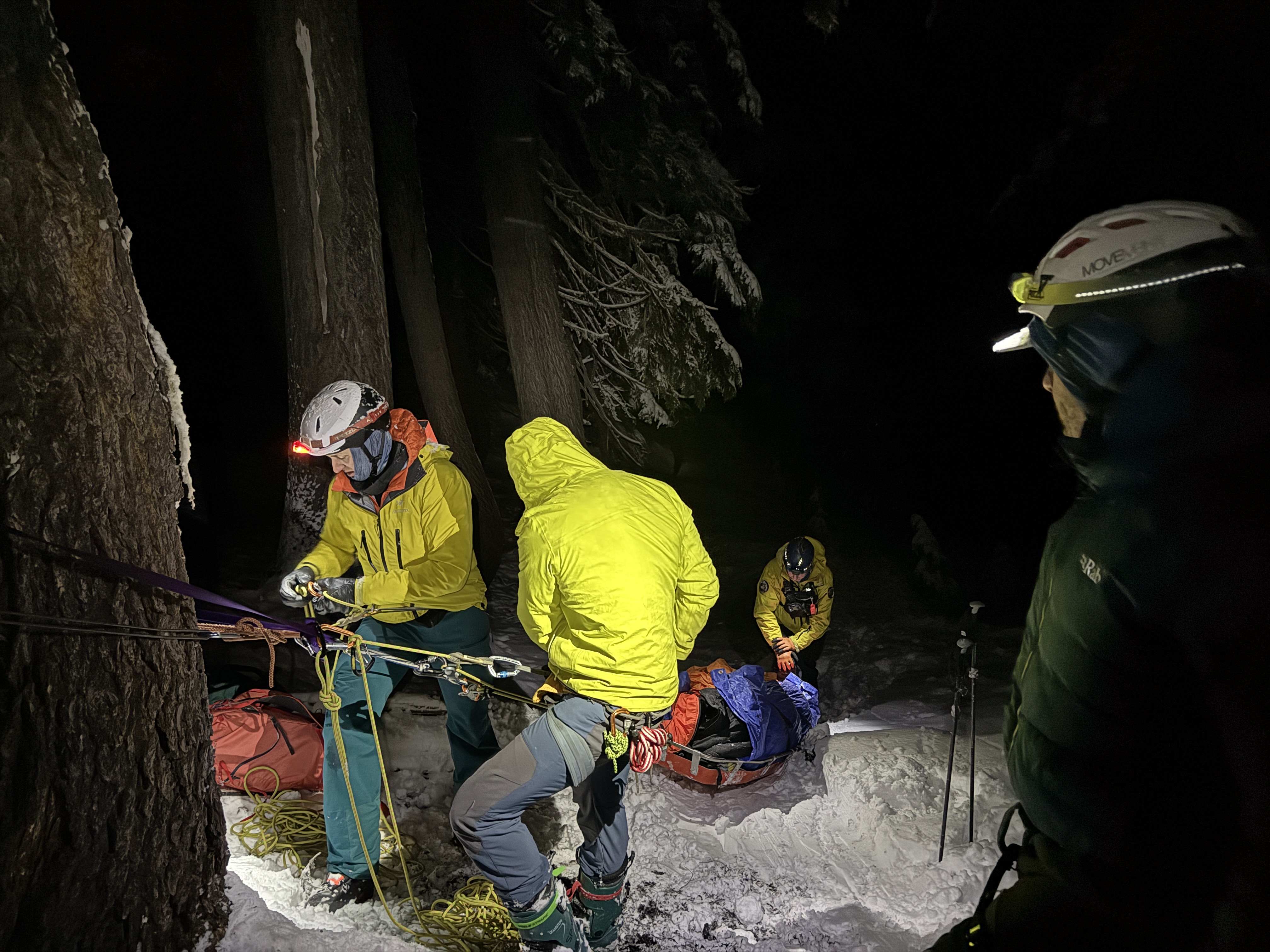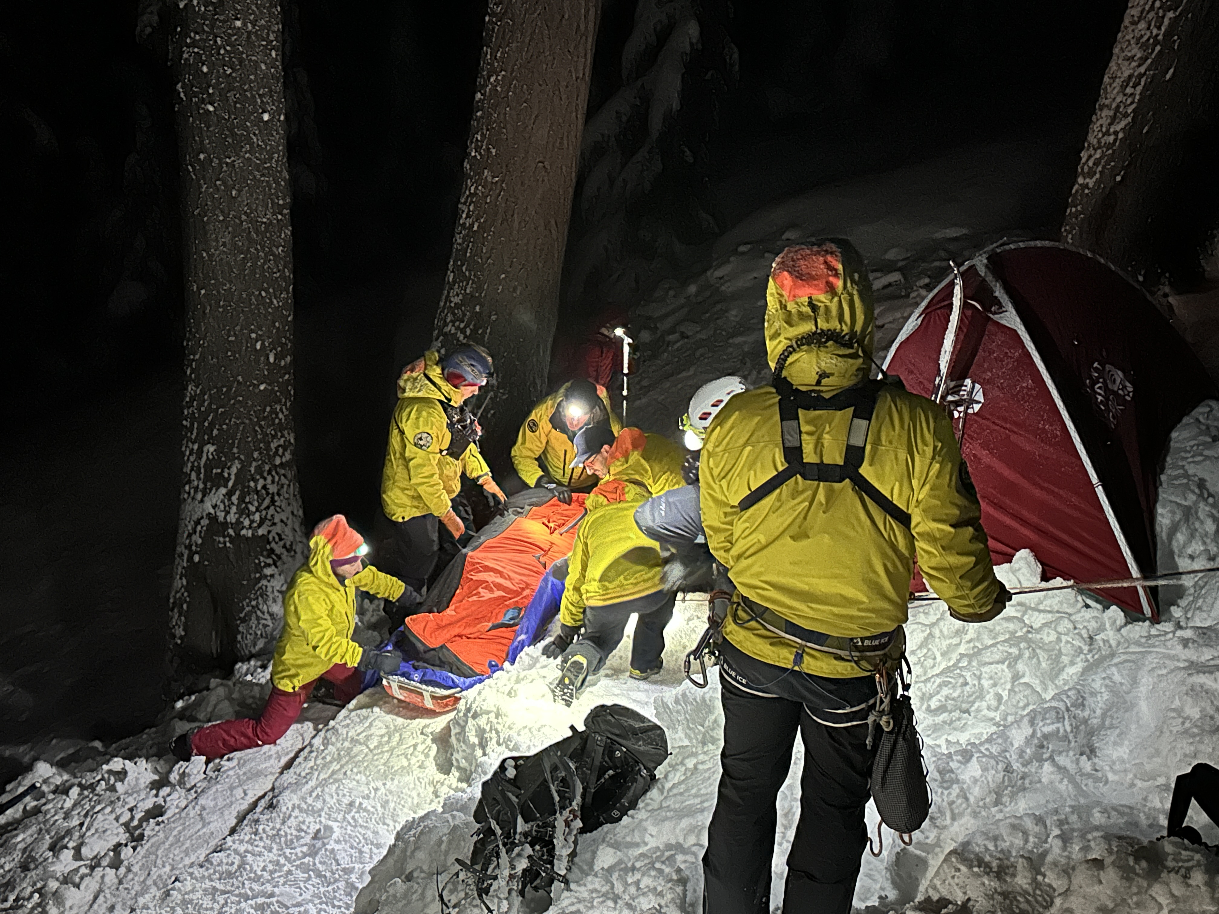 Thirteen volunteers from the SAR Medical and Mountain Rescue teams reached the hikers at 8:25 p.m. One hiker was able to walk out without assistance. The second was transported in a Cascade rescue sled after being warmed up by SAR medical personnel.