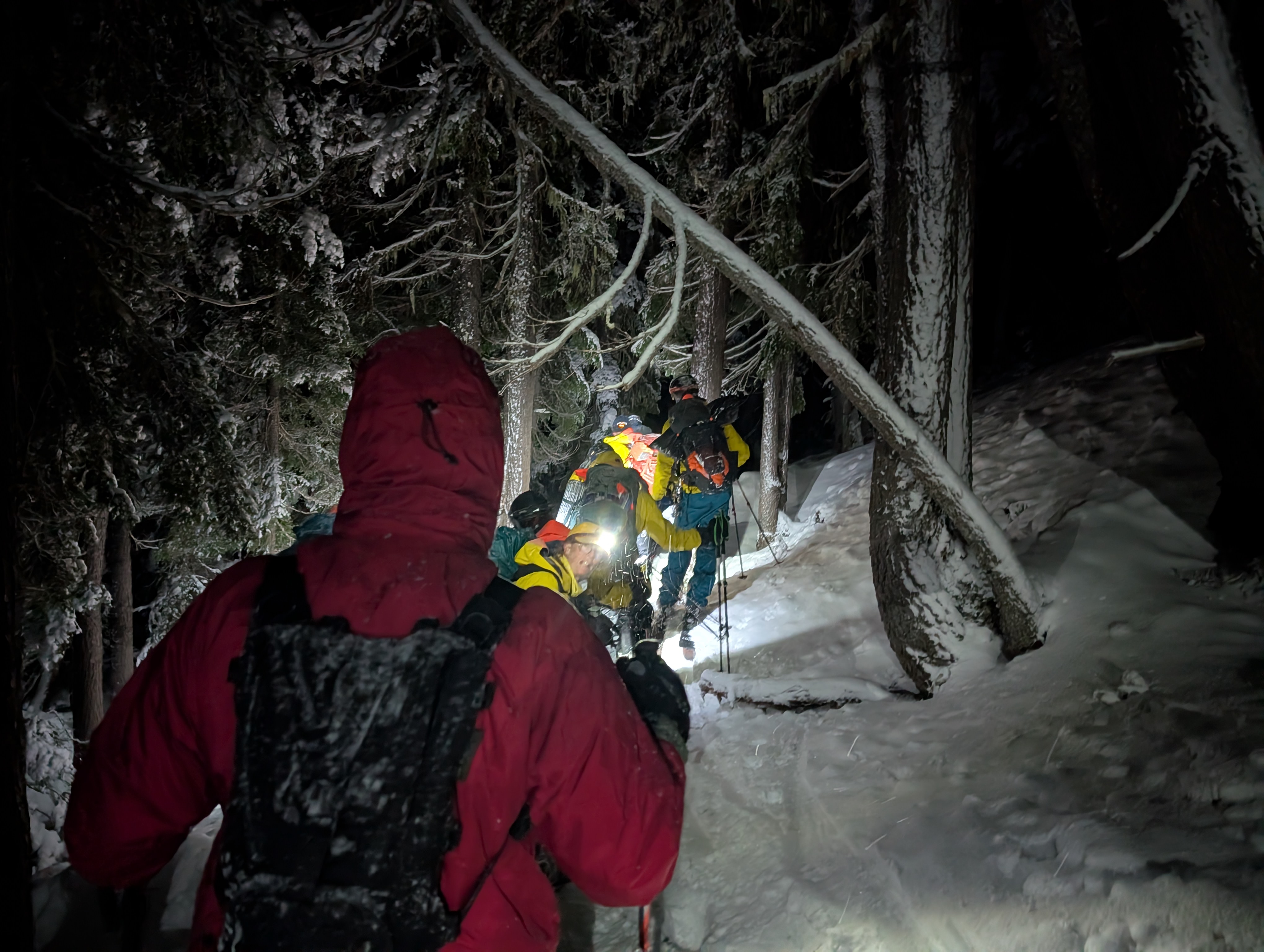 SAR crews arrived at Cascade Lakes Highway with the hikers at 3:45 a.m., after navigating deep, variable snow. One hiker was transferred to a Bend Fire & Rescue ambulance for further evaluation, while the other was taken to his car.