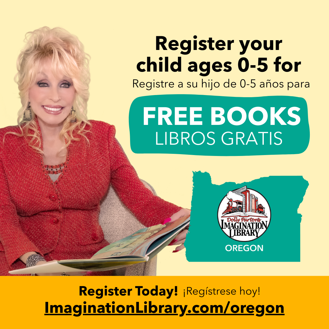 The program currently serves more than 73,000 Oregon children - representing approximately 34% of the state's children under five years old -who receive monthly book deliveries through Dolly Parton's Imagination Library, in every zip code in Oregon. Families pay nothing for participation, with program expenses supported through collaborative funding from local community partners, The Dollywood Foundation, and the State of Oregon via the Department of Early Learning and Care.
