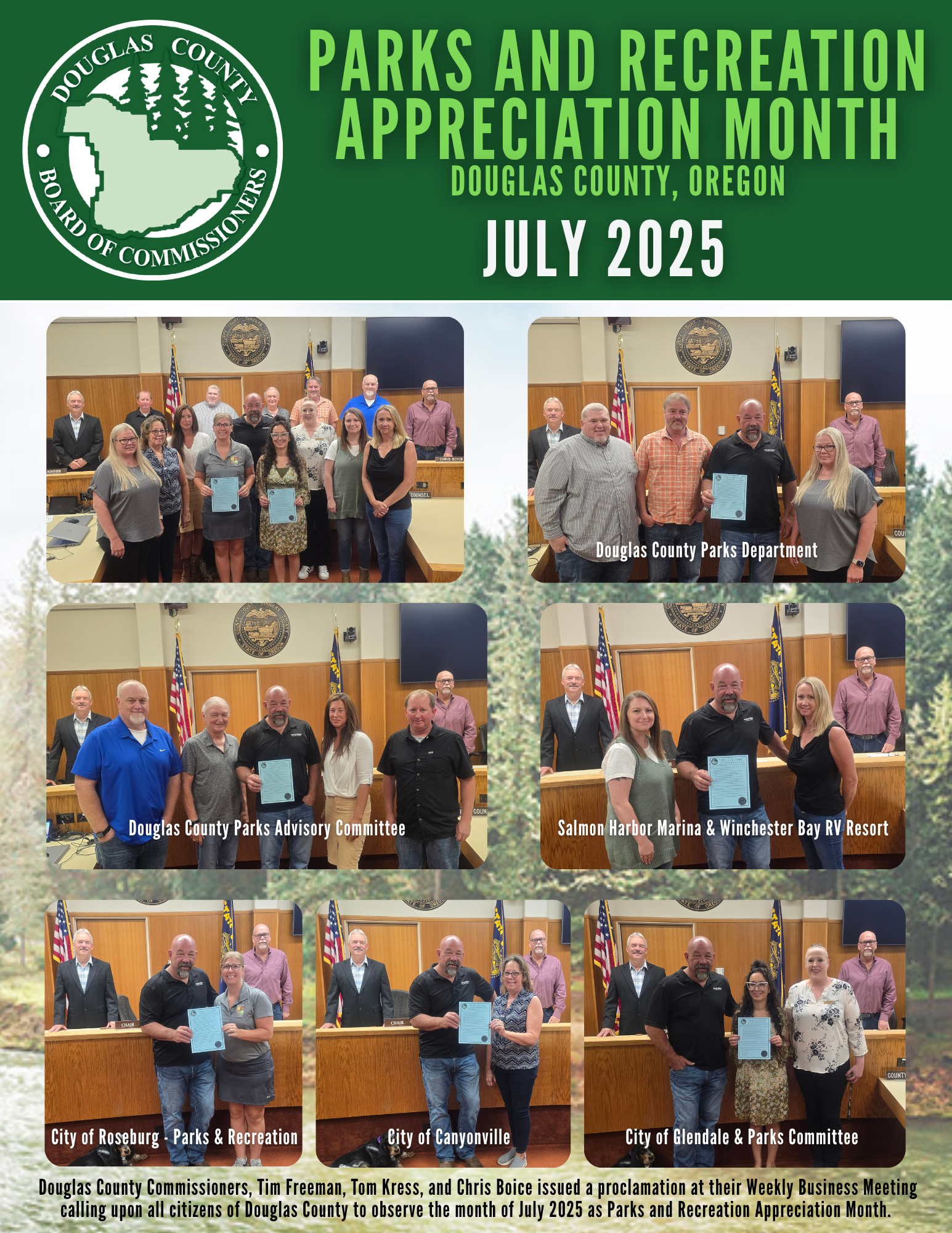 (Douglas County, Ore.) Douglas County Commissioners Tim Freeman, Tom Kress, and Chris Boice had the opportunity to recognize Jim Zimmer, Department Director at Douglas County’s Salmon Harbor Division and Ciera Keith, Director at the Douglas County Fairgrounds, for their respective accolades.