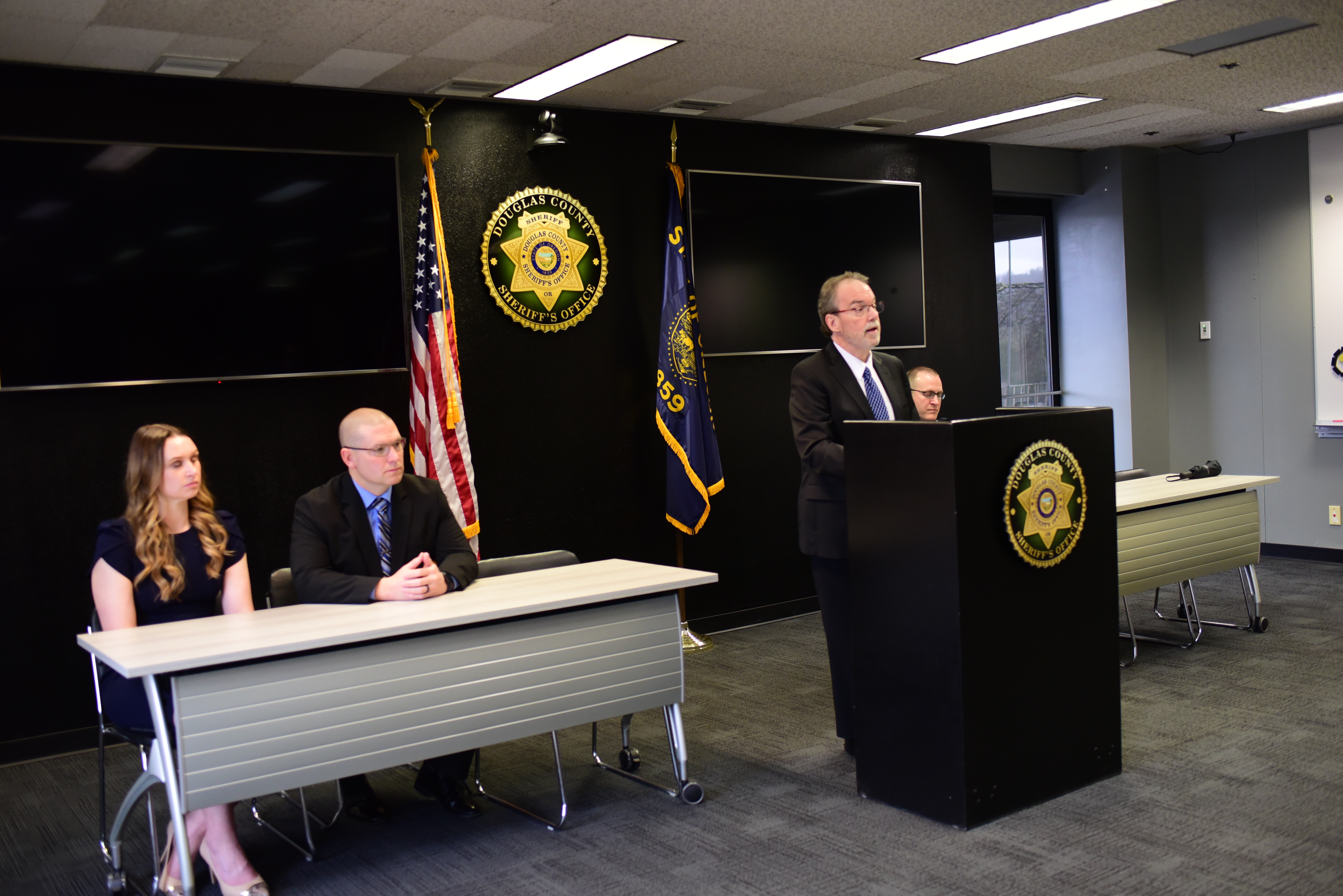 (Douglas County, Ore.) Douglas County District Attorney Rick Wesenberg held a press conference today, Friday, March 10, 2023, to discuss the officer-involved shooting that occurred on Tuesday, February 28, 2023 at the temporary Warming Center housed in the Roseburg Senior Center located at 1614 SE Stephens Street in Roseburg, Oregon. He was joined by Roseburg Chief of Police Gary Klopfenstein, Douglas County Sheriff’s Detective Lieutenant Kelley Bean and Chief Deputy District Attorney Allison Eichman. The press conference was held inside the Douglas County Sheriff’s Office in Roseburg, Oregon.