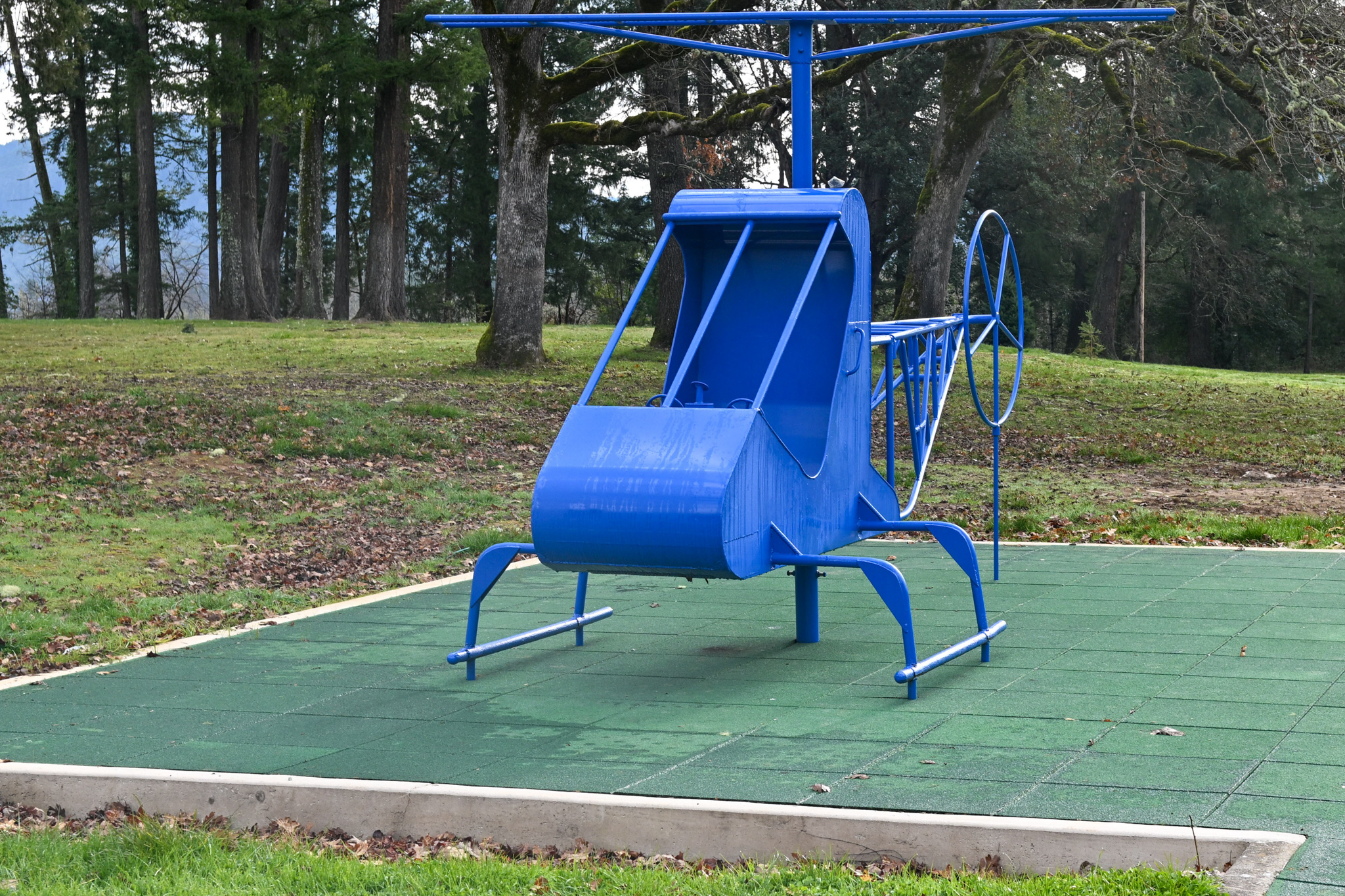 (Douglas County, Ore.) The Douglas County Board of Commissioners and Douglas County Parks Department, through the support of the community, are excited to announce that they were able to preserve the history, character, and family-centered experiences that define the Douglas County Park system through a coordinated restoration partnership with local Douglas County business. The partnership focused on restoring three historic park displays; “Willie” the Whale water display at River Forks County Park and helicopter play structures located at both Charles V. Stanton County Park and River Forks County Park. These iconic structures, long woven into the memories of local families across multiple generations, serve as both recreational amenities and a piece of Douglas County’s history.