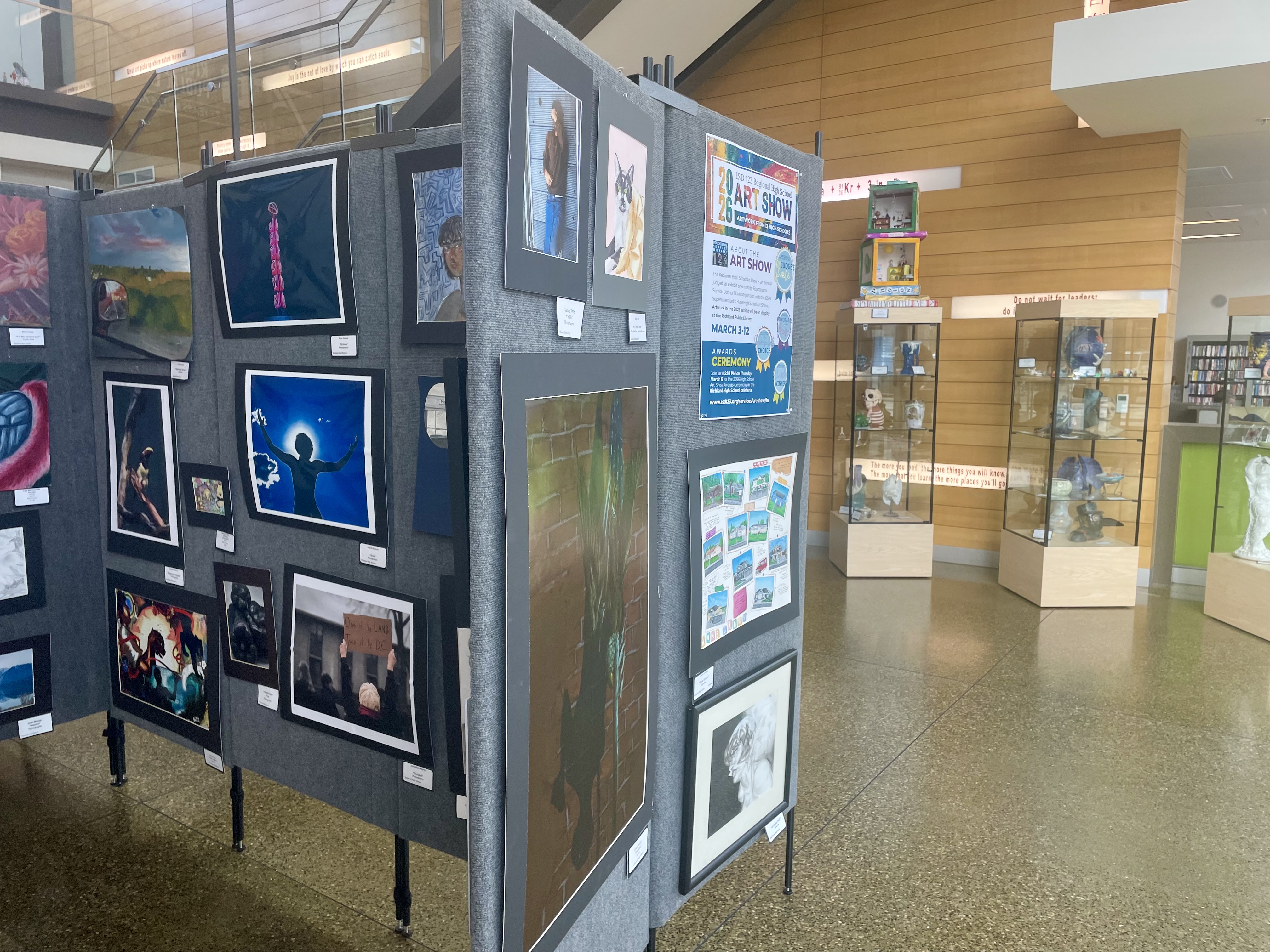 PASCO, WA– The 2026 Annual Regional High School Art Show is now on display at its new home inside the Richland Public Library, showcasing more than 250 works of art created by talented high school students from 13 schools across five Southeastern Washington school districts. Coordinated by Educational Service District 123, the exhibit will be open to the public March 3–12.