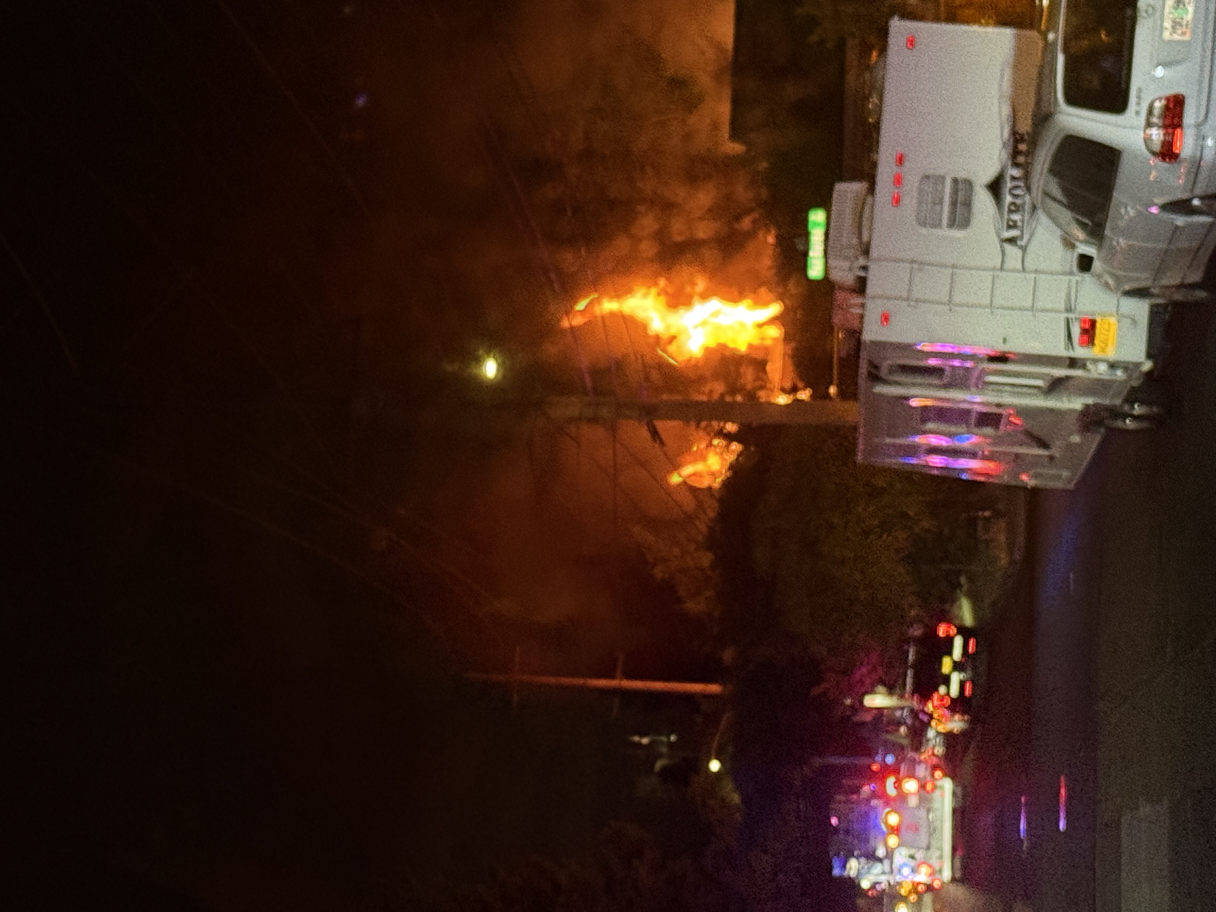 Eugene, OR. Eugene Springfield Fire responded to an explosion and fire that sent two to a local hospital just before midnight. Firefighters were called to a reported explosion in the 3900 block of River Rd in the Santa Clara neighborhood. Firefighters arrived to find a heavily damaged shop involved in fire that had extended to the tree line. When assessing the situation crews located a resident with severe burns who was transported to the hospital in serious condition. The fire was quickly brought under control but required extensive overhaul. Just after midnight a second victim was located at an apartment in the 100 block of Santa Clara Ave. The second individual has severe burns as well and was transported in serious condition.