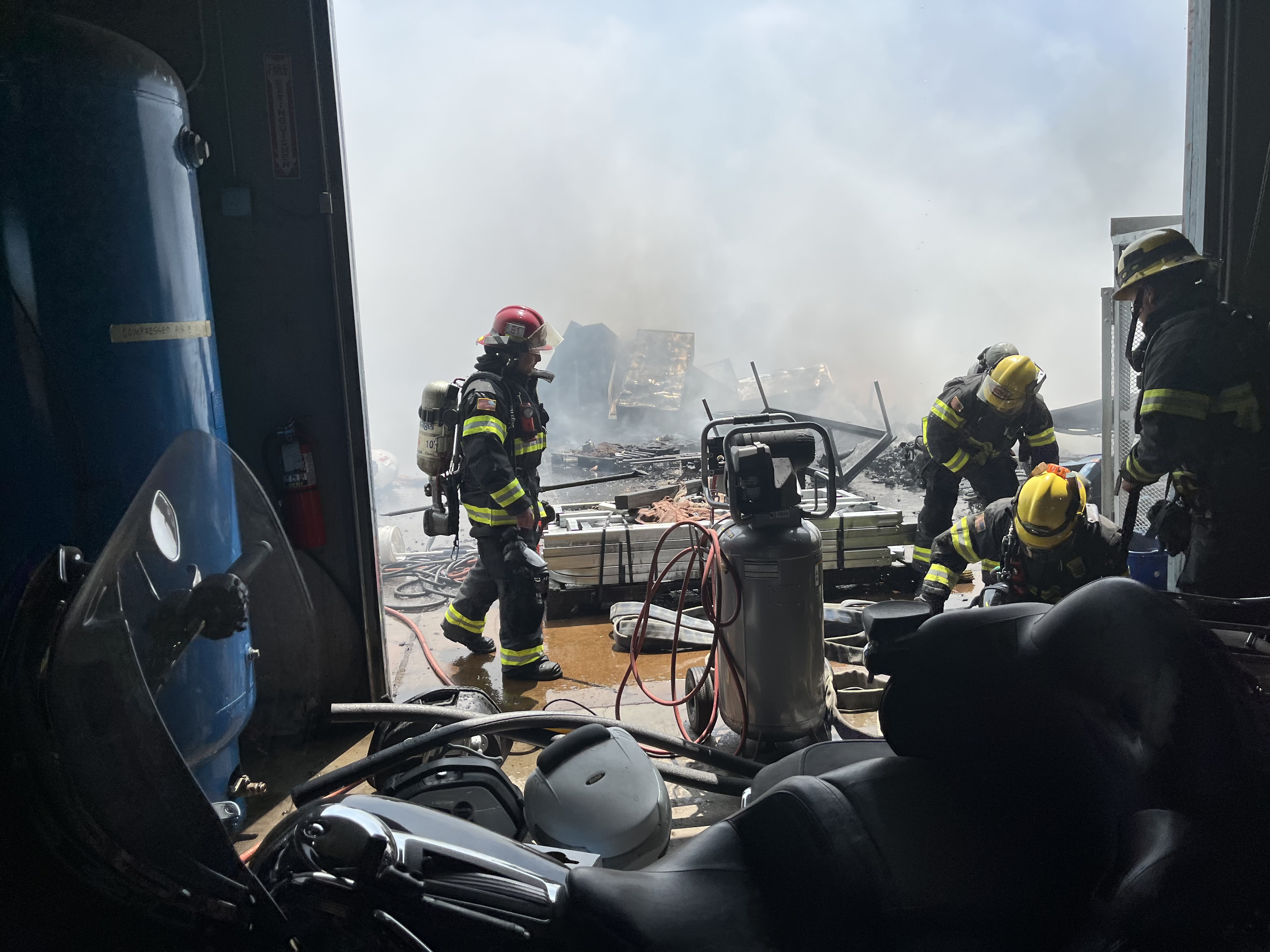Engine 5 from the Gateway station arrived at 0359 and reported a working fire in the garage. The crew deployed a hose line for fire attack and search operations in the garage assisted by Engine 4.