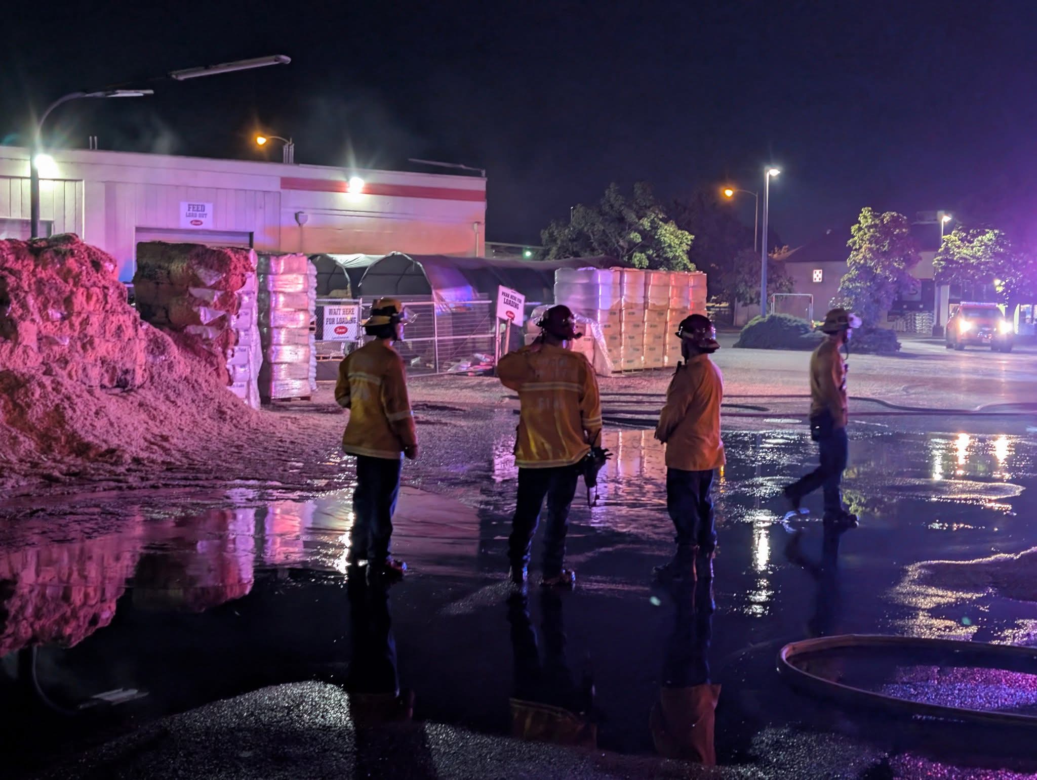Eugene, OR. Eugene Springfield Fire responded to two fires in west Eugene Tuesday night. Just before 10 PM on September 2nd, crews were dispatched to a possible brush fire in the 2200 block of W 6th Ave. Firefighters arrived to find a large fire burning pellets of wood shavings at Coastal Farm. It took two engines and a water tender about 90 minutes to extinguish the fire. The cause is under investigation. (Photo credit: Jamie’s Fire Scene Photography)