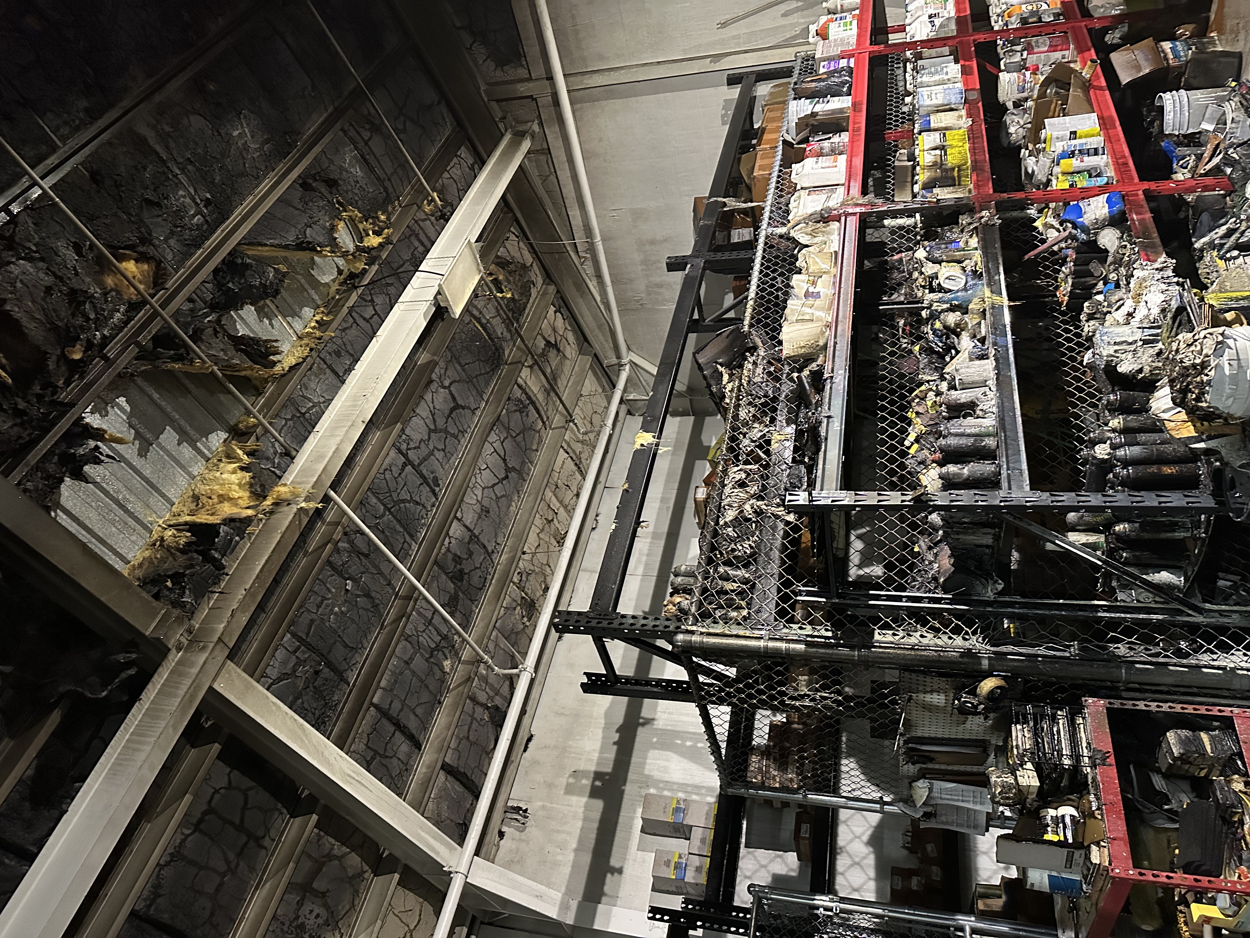 Crews quickly forced entry in to the building and located the sprinkler controlled fire. The firefighters made access with a hose-line to extinguish the remaining fire and performed a primary search of the building for any potential victims. With the fire under control, units performed extensive overhaul, ventilated smoke, and conducted a secondary search of the structure. ESF fire marshals office is on scene investigating. The fire was contained to the area of origin (racked chemical and paint storage). There were no injuries reported.