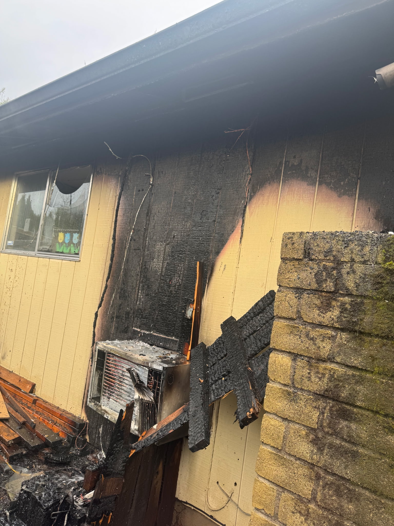 Eugene, OR. Shortly after 2:30 PM on January 7th, Eugene Springfield Fire responded to a reported house fire in the Cal Young neighborhood. A passing motorist noticed the fire in the 2000 block of Brewer Ave. Engine 9 from Valley River was in the area responding to a non-urgent call for service. The crew transitioned to the fire and arrived shortly after the call was dispatched. E9 found a working fire on the side of the house exterior with smoke coming from the attic. E9 quickly knocked down exterior fire and moved interior for fire attack and primary search. Ladder 11 arrived shortly after and assisted E9 with interior fire attack. The fire had extended into the living room, and crews quickly knocked down the active fire in the house, pulled the ceiling in the living room, and checked for fire in the attic. Truck 1 was sent to the roof to open ventilation holes and check for extension from the top.