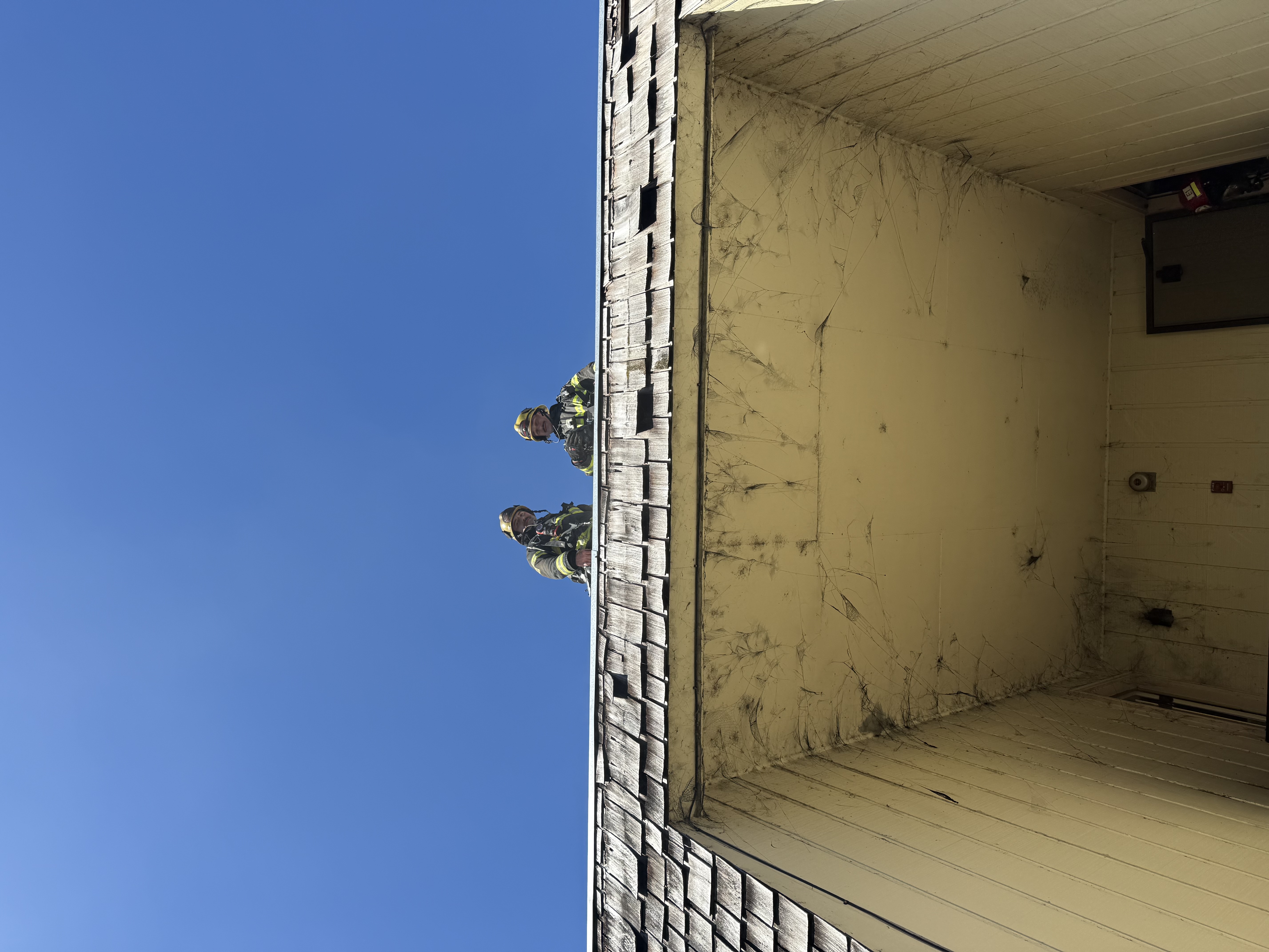 With access issues and heavy fire, a second alarm was called to ensure sufficient resources to search for potential victims and engage fire on multiple floors. Truck 1 arrived first and entered the fire occupancy to search and slow the spread of fire with their “cans”. Cans are 2.5 gallon water extinguishers that are often used by crews staffing apparatus that do not have pumps and hoses. The can is capable of knocking fire down and protecting the crew when searching ahead of a hose line.