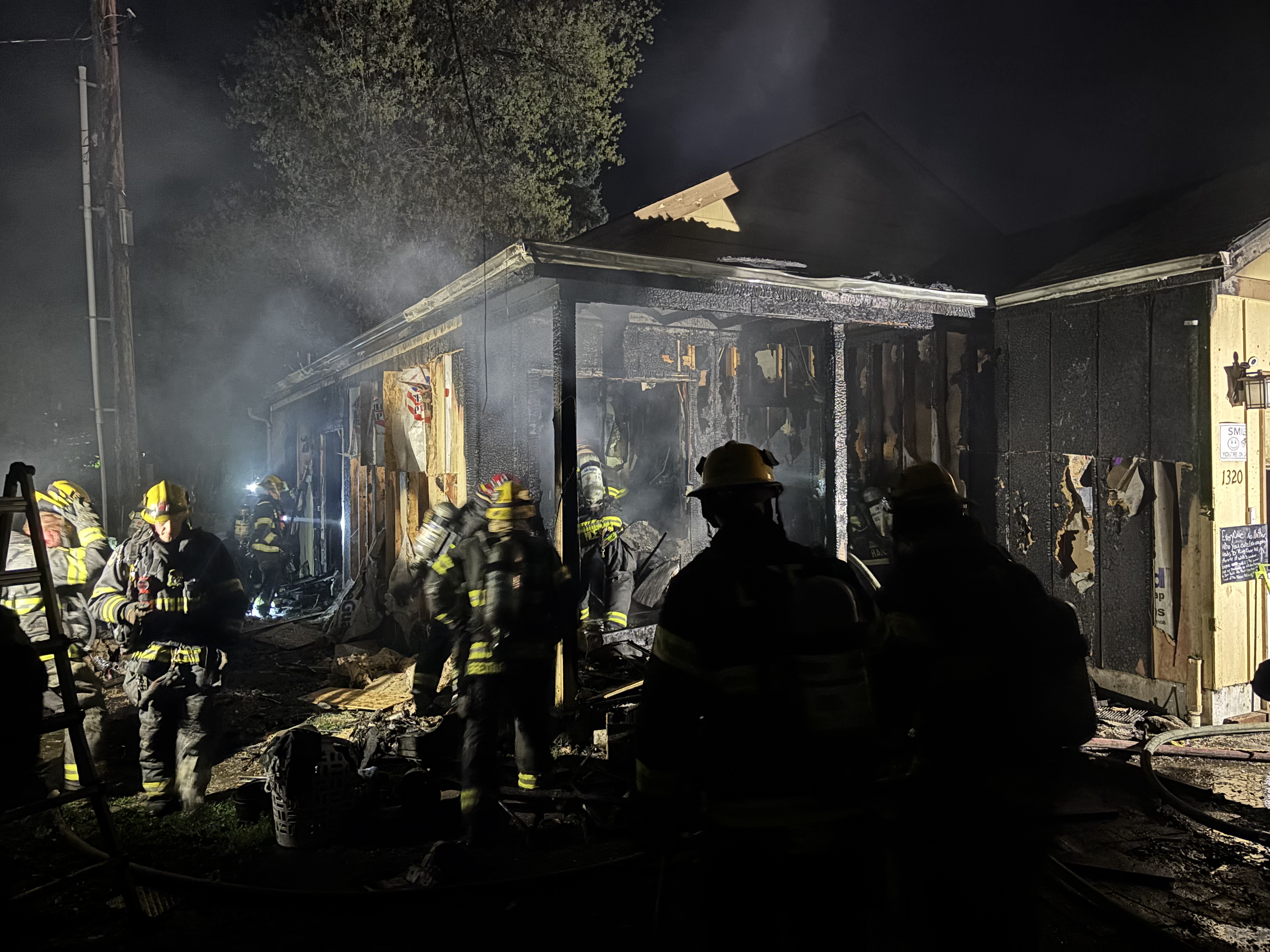 Engine 14 initiated a fire attack inside the home with Tower 3 providing assistance. Crews discovered fire beneath the floor that had compromised multiple propane tanks, creating an unstable floor condition. In the interest of crew safety, firefighters exited the structure and transitioned to an exterior attack to control the propane fire before continuing suppression efforts on the structure.