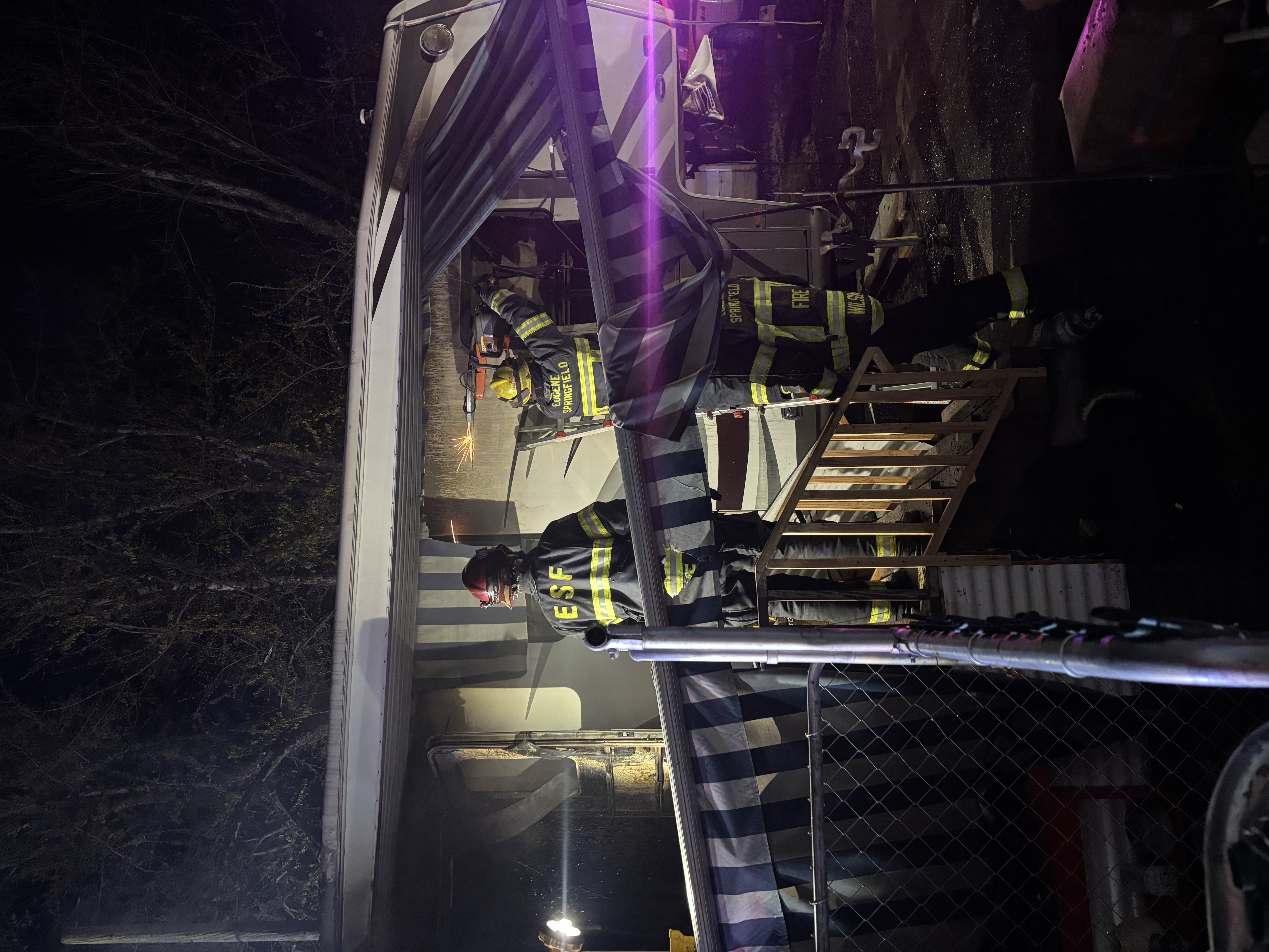 Engine 4 applied water from the exterior; however, hoarding conditions in both the yard and inside the structure initially prevented interior access. Engine 4 crews were able to quickly halt the spread of fire through sustained exterior water application. Engine 4 and Tower 3, subsequently gained entry through a side door to conduct a thorough victim search and continue fire extinguishment.