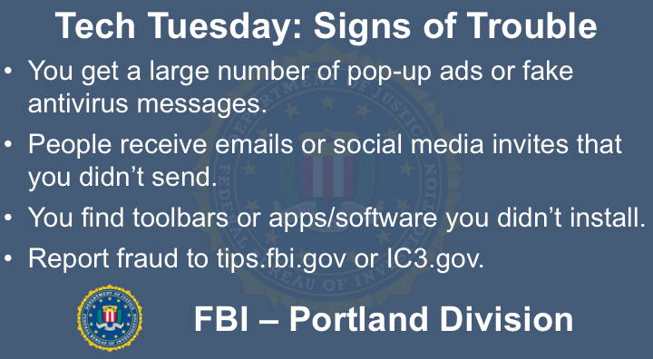 Oregon FBI Tech Tuesday: Building A Digital Defense By Recognizing Signs Of Trouble (Photo) - 06/02/20